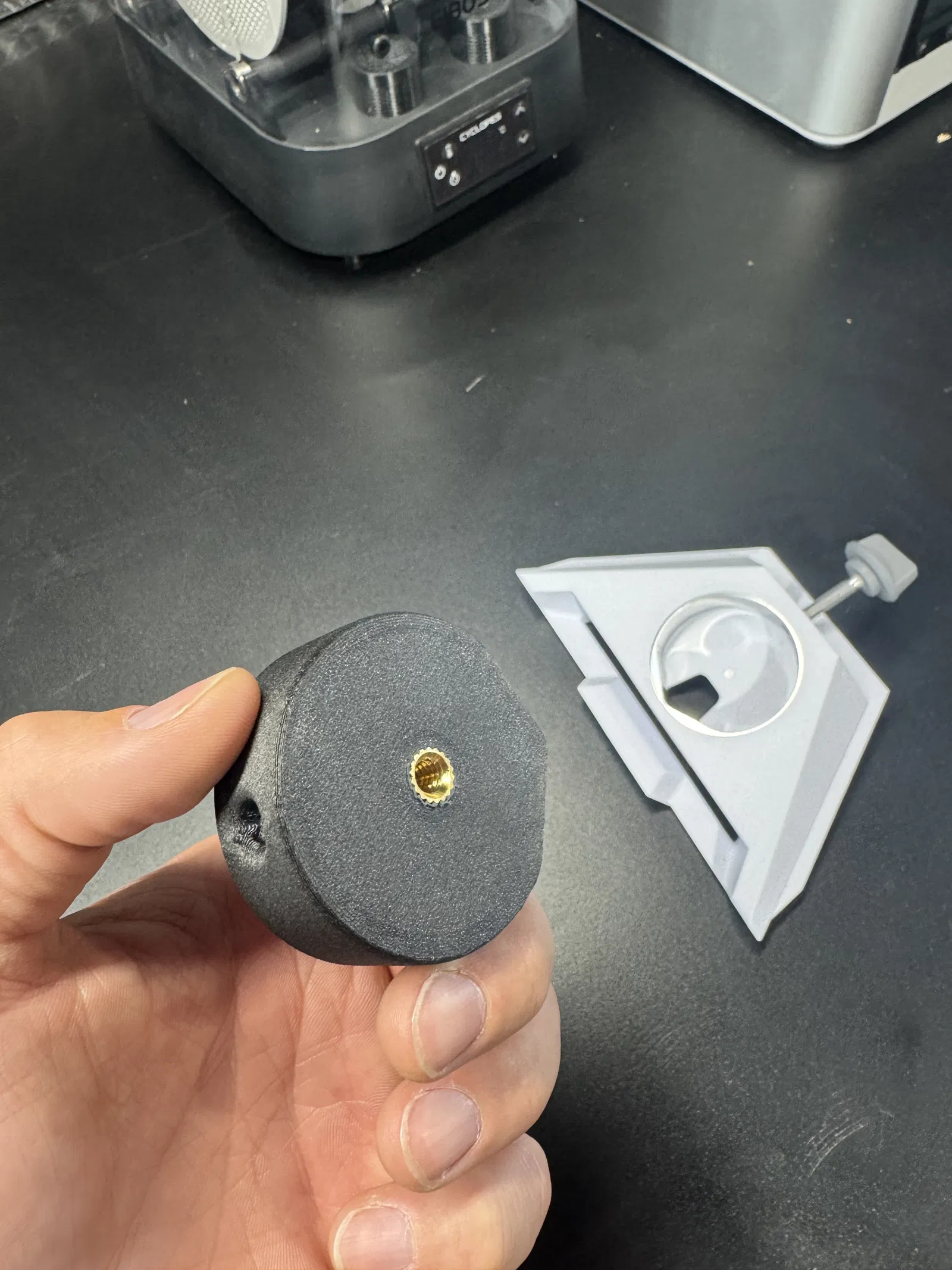 Lỗ ren tui dùng là loại Ruthex 1/4-20 (https://www.3djake.com/ruthex/threaded-inserts-1-4-20-pieces), nhưng mà loại lỗ ren 1/4-20 nào có đường kính ngoài khoảng 8mm là xài được hết.