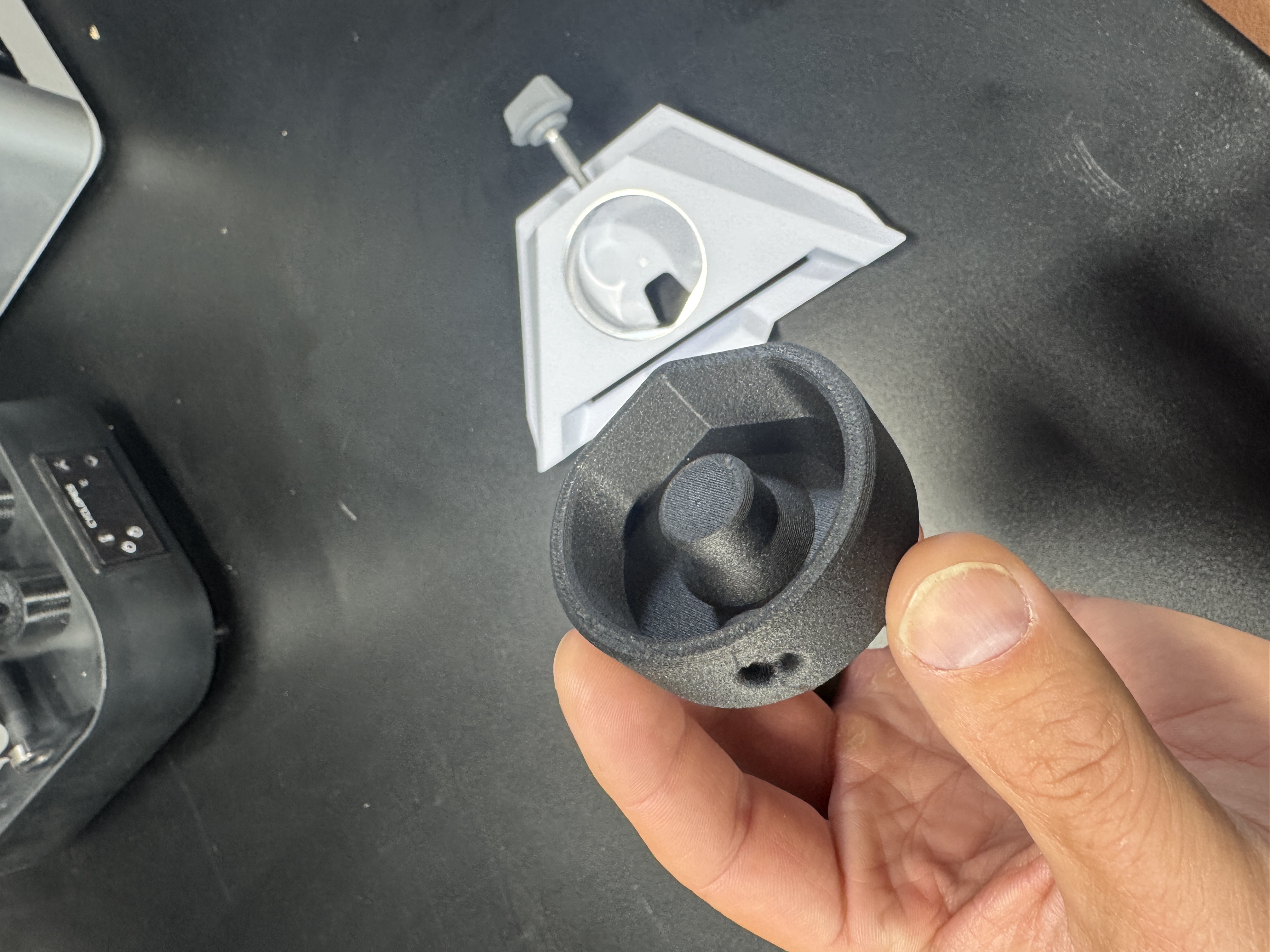 Tui đã in cái này bằng PET-CF vì độ bền và khả năng chịu nhiệt của nó, nhưng mà loại nhựa nào cũng xài được thôi, tui khuyên nên in 6 lớp vỏ và khoảng 25% độ đặc ruột. Không cần hỗ trợ.