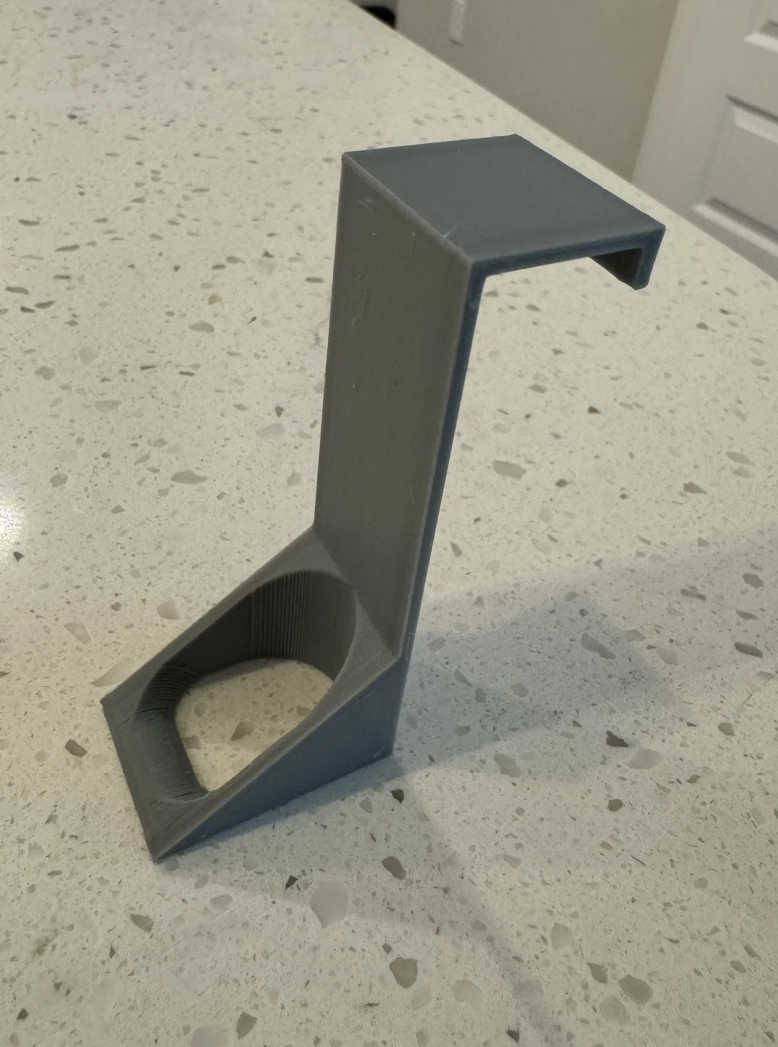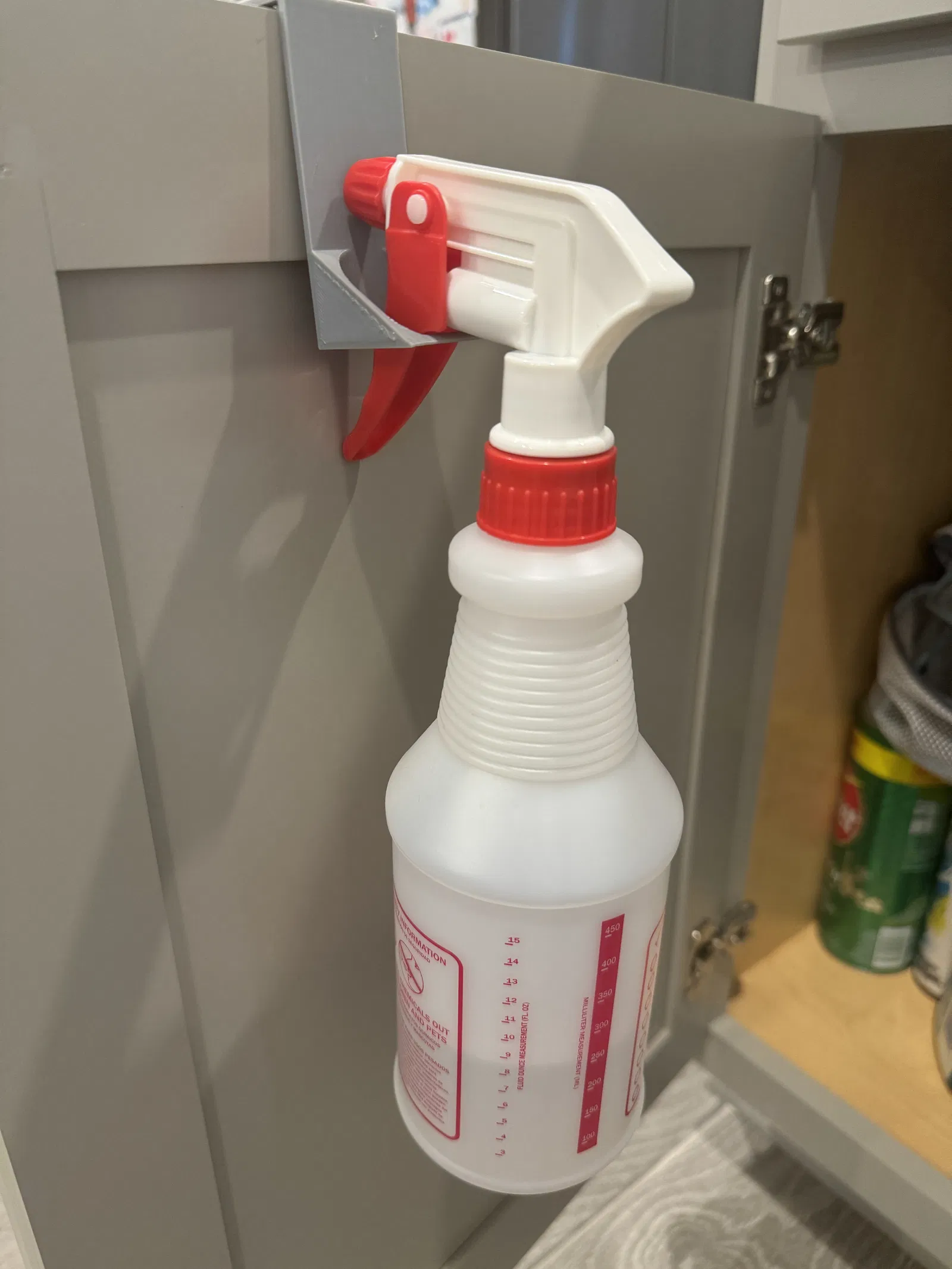 Một miếng băng dính hai mặt nhỏ hoặc một ít keo nến có thể hữu ích để giữ giá đỡ gắn vào tủ và không bị rơi ra khi nhấc chai xịt lên; mặc dù không bắt buộc. Tôi đã thử nghiệm điều này với mọi loại chai xịt có cò súng mà tôi có trong nhà, và các kích thước này đều vừa với tất cả. Khi sử dụng OrcaSlicer để in các bản mẫu, tôi đã từng nhận được cảnh báo về một thanh giằng bị lơ lửng trên một mẫu, nhưng nó đã in ổn và tôi chưa từng nhận cảnh báo đó trên bất kỳ mẫu nào khác, nên chỉ để bạn biết phòng trường hợp bạn gặp phải.