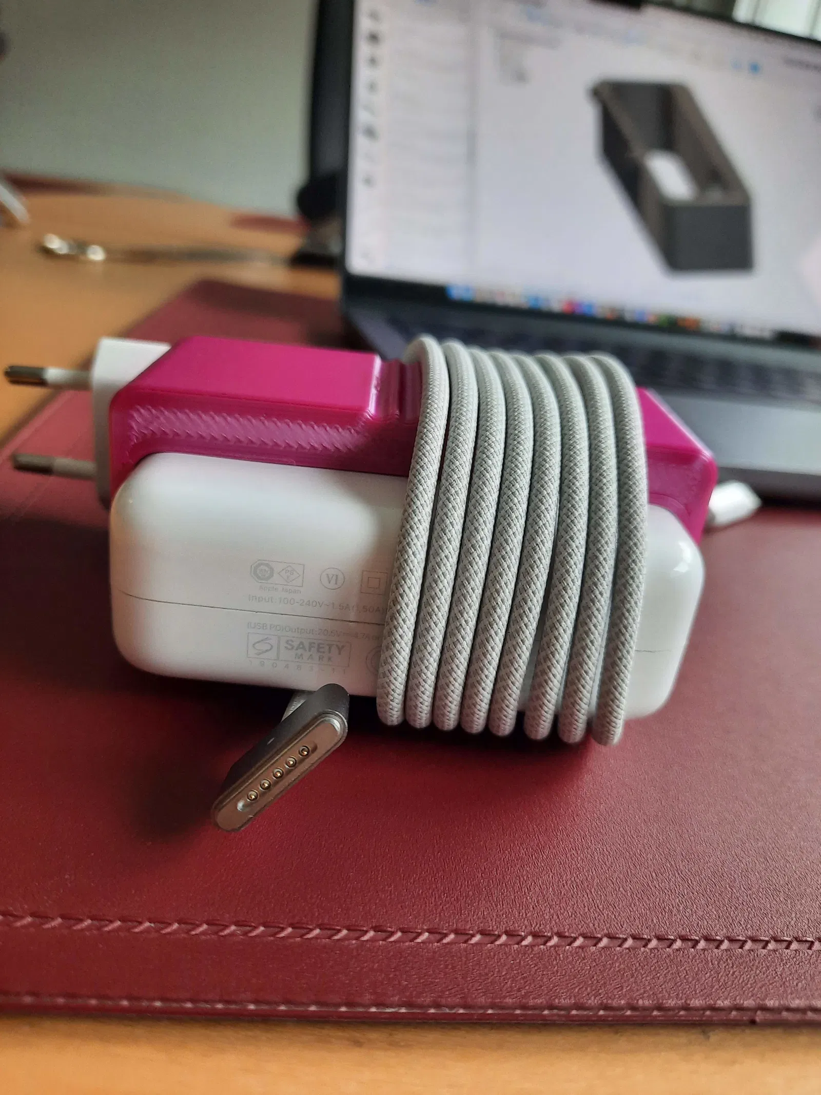 Tạo cuộn dây sạc cho adapter nguồn MagSafe - USB-C từ 61w đến 140w của MacBook Pro 14 inch 2023, có khe cắm AirTag tiện lợi. Giữ cho dây sạc của bạn gọn gàng và dễ dàng mang theo.