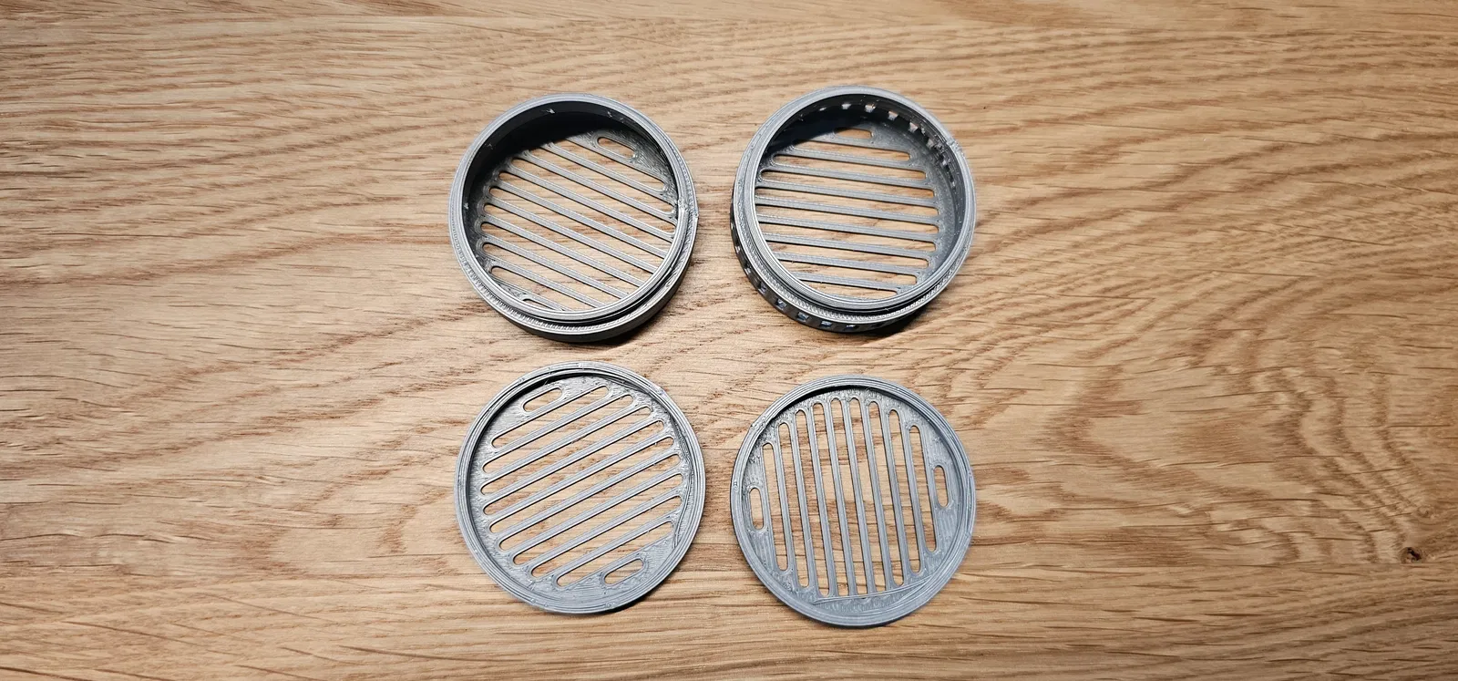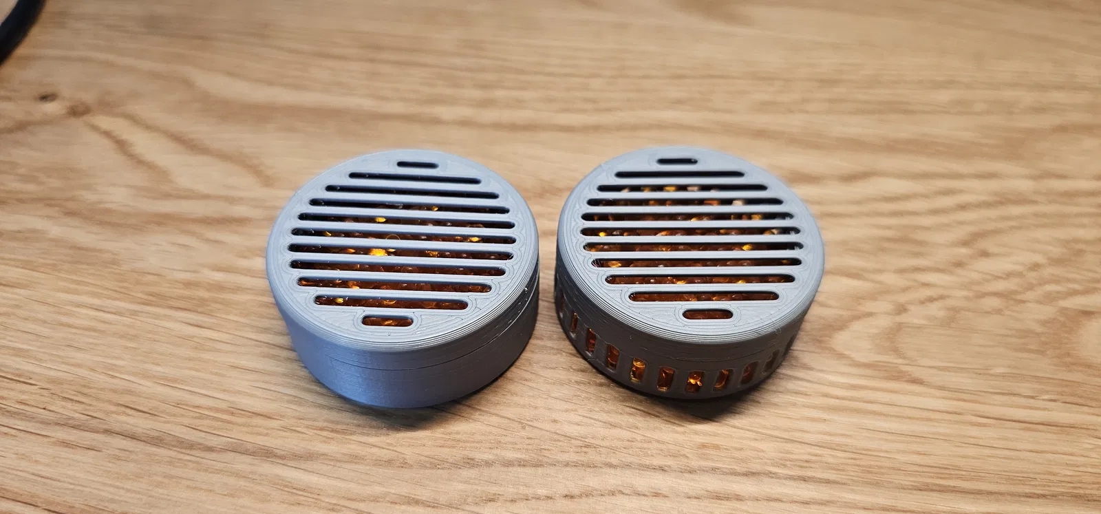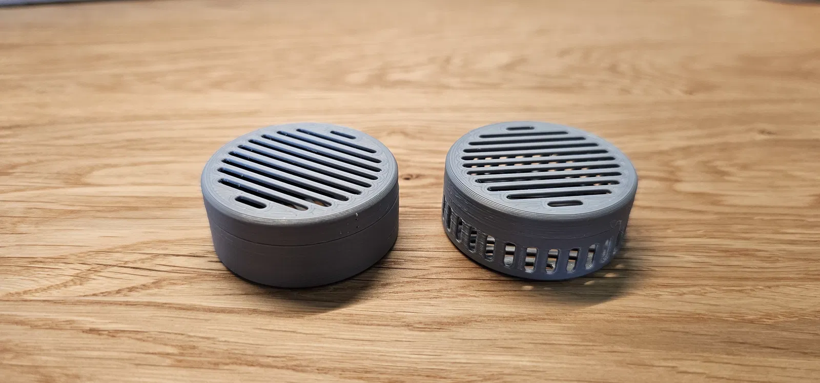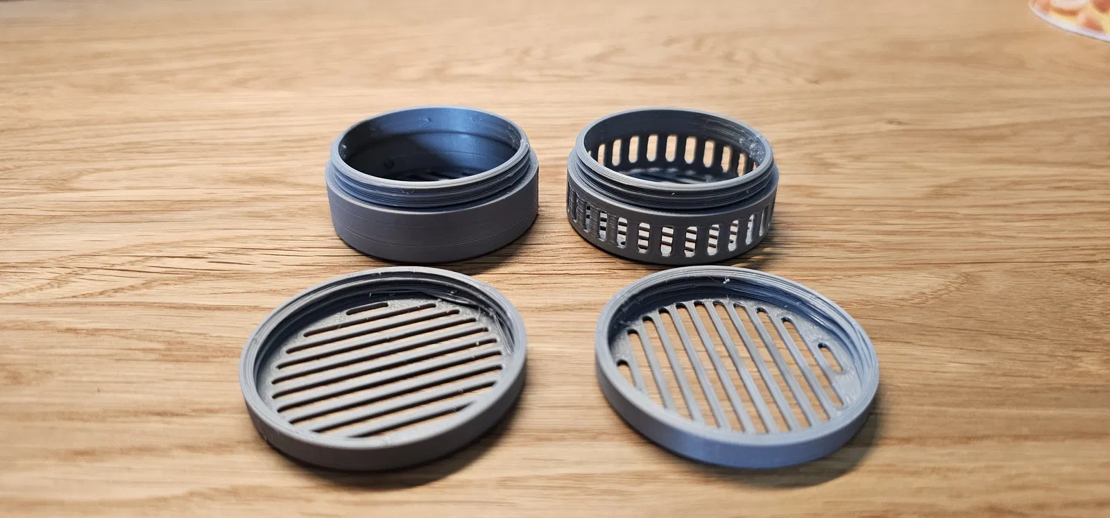 Hộp đựng hạt hút ẩm silica gel. Kích thước đường kính 45 mm, cao 18 mm. Có khe với kích thước 2 mm. Độ dày thành hộp 1 mm, dùng 6.1 g filament. Nắp hộp được đóng bằng ren vặn.