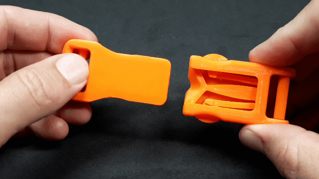 Nhiều khi khóa cài (ví dụ trên ba lô) bị gãy khi bị dẫm lên. Tôi tin rằng những khóa cài in 3D này sẽ bền lâu, vì chúng về cơ bản là hai tấm khớp với nhau. Đối với các chốt, tôi sử dụng các đòn bẩy đàn hồi được tích hợp và bảo vệ tốt hơn trong bộ phận in.