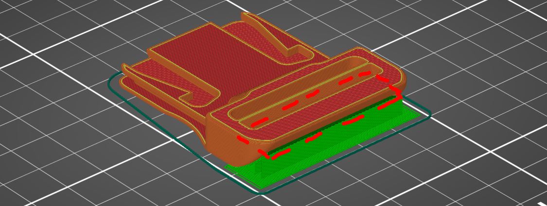 Các bộ phận "Nữ" chỉ cần hỗ trợ bên dưới các nút nhô ra khỏi thân. Để xử lý hậu kỳ thuận tiện, hãy tắt tham số "Detect bridging perimeters" (Cài đặt in / Lớp và đường viền trong PRUSA Slicer).