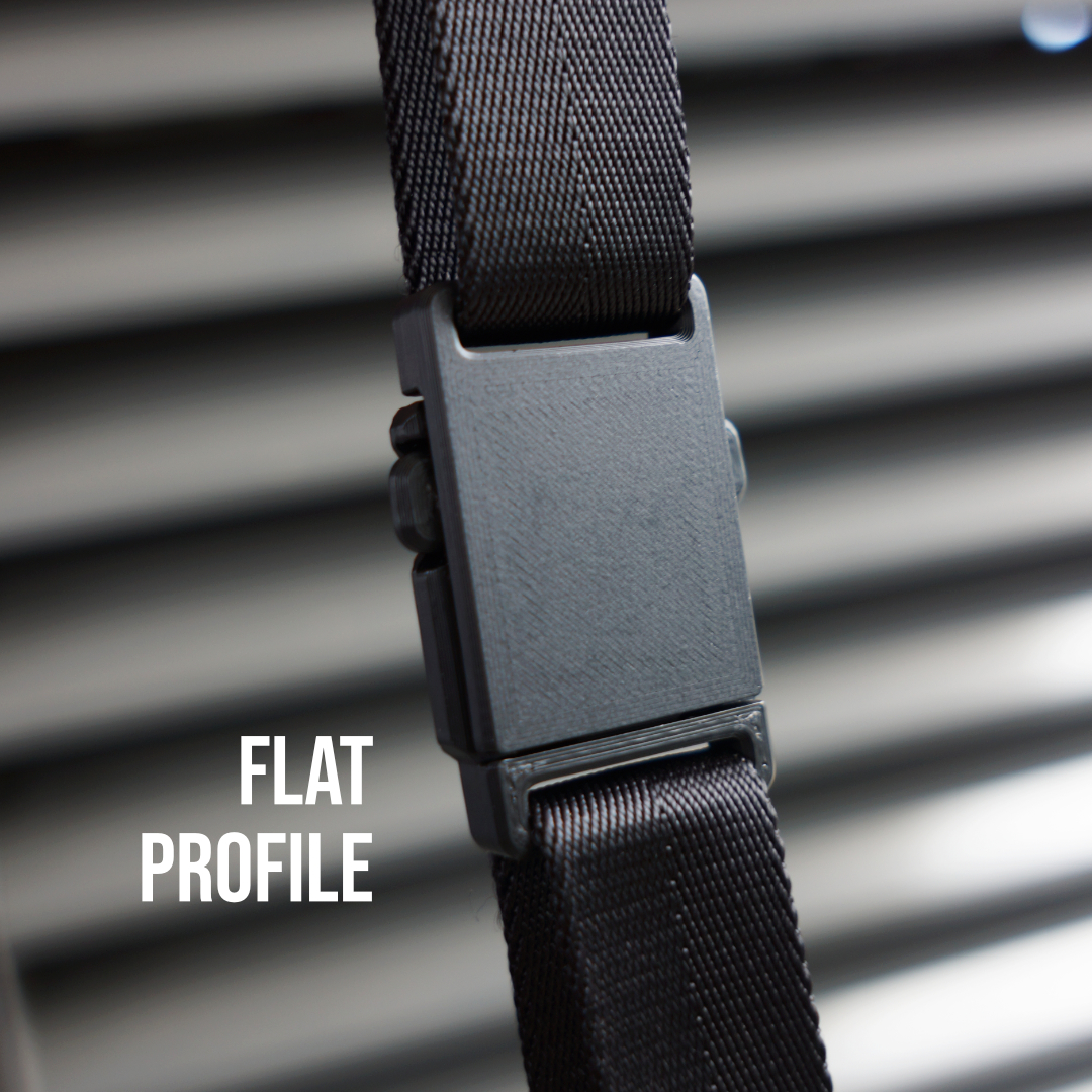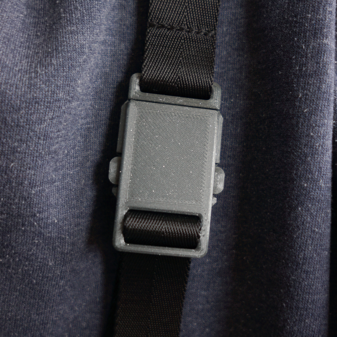 Khóa cài dây Balo dạng dẹt, tối giản. Có hai kích cỡ 20mm và 25mm. Gợi ý in: độ dày lớp 0.2mm, infill 50%, 5 vách, không cần supports. Bền hơn khi in bằng PETG. Các bộ phận lắp ráp bằng cơ chế ép giữ.
