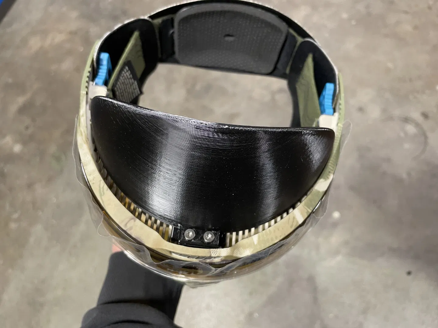 Miếng bảo vệ trán cho mặt nạ DYE I5, rất hữu ích khi chơi airsoft. Hướng dẫn in và lắp ráp chi tiết kèm theo, bạn cần 2 ốc M3x16mm và 2 đai ốc M3.