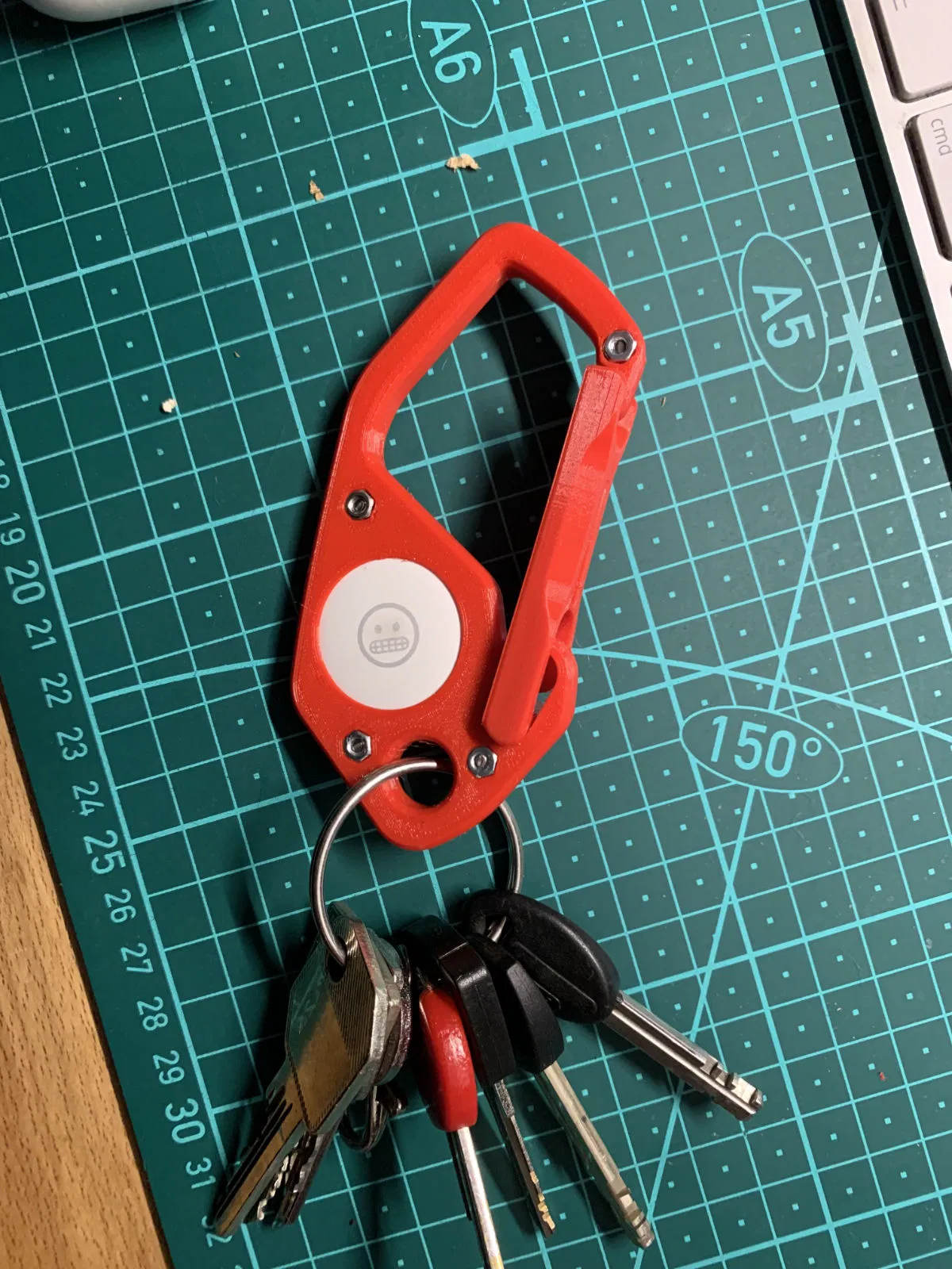 Tui tích hợp cái Airtag vô cái móc khóa để dọn dẹp bớt chùm chìa khóa của mình. Cái này là bản remix của một cái móc khóa khác, giờ có thêm chỗ gắn Airtag tiện lợi. Dùng 4 con ốc M2.5*6 để lắp ráp nha.