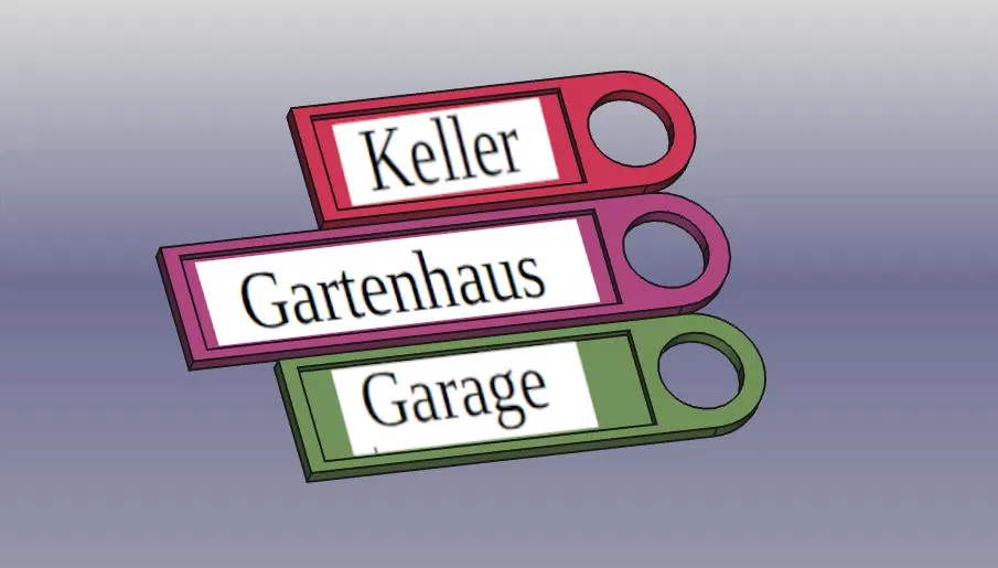 Đây là mẫu móc khóa DYMO có 3 kích cỡ khác nhau (12x30mm, 12x40mm, 12x50mm), giúp bạn dễ dàng ghi nhãn chìa khóa hoặc các vật dụng khác bằng băng keo DYMO. Chiều dài filament cần thiết cho mỗi kích cỡ được liệt kê chi tiết.
