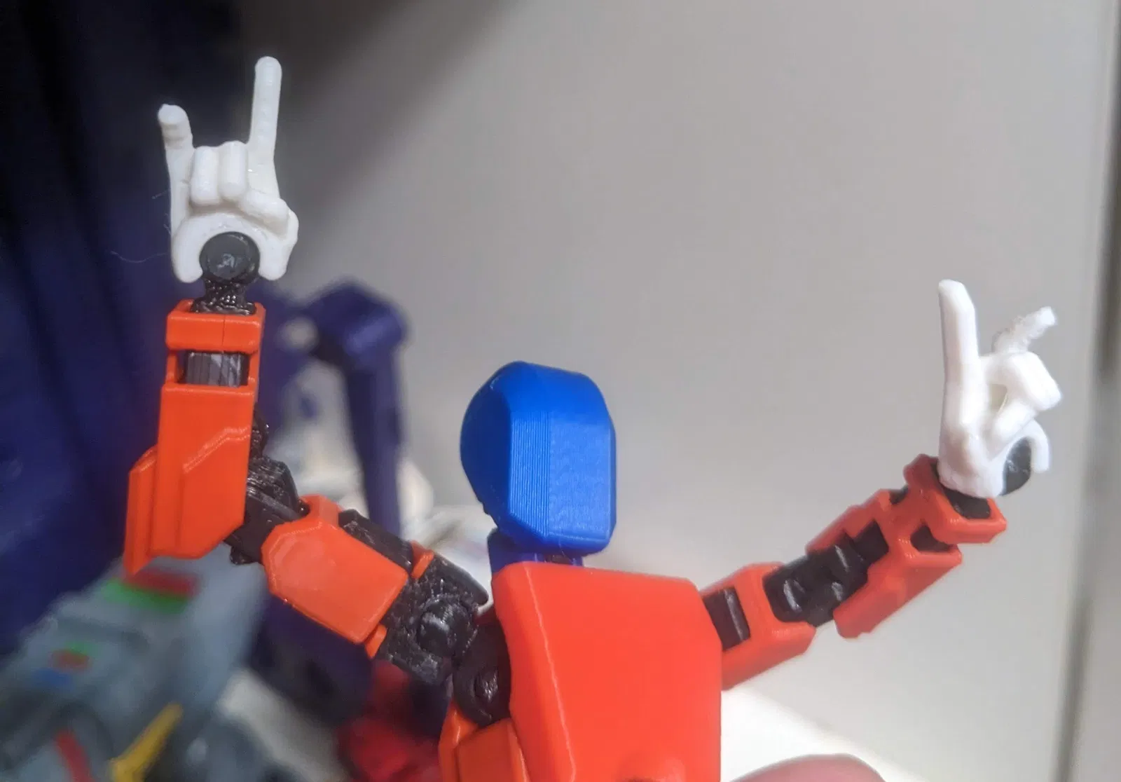 Cặp tay giơ dấu hiệu của sừng. In bằng sợi vật liệu cứng như ASA. Lớp đầu tiên 0.20. Các lớp còn lại 0.15.