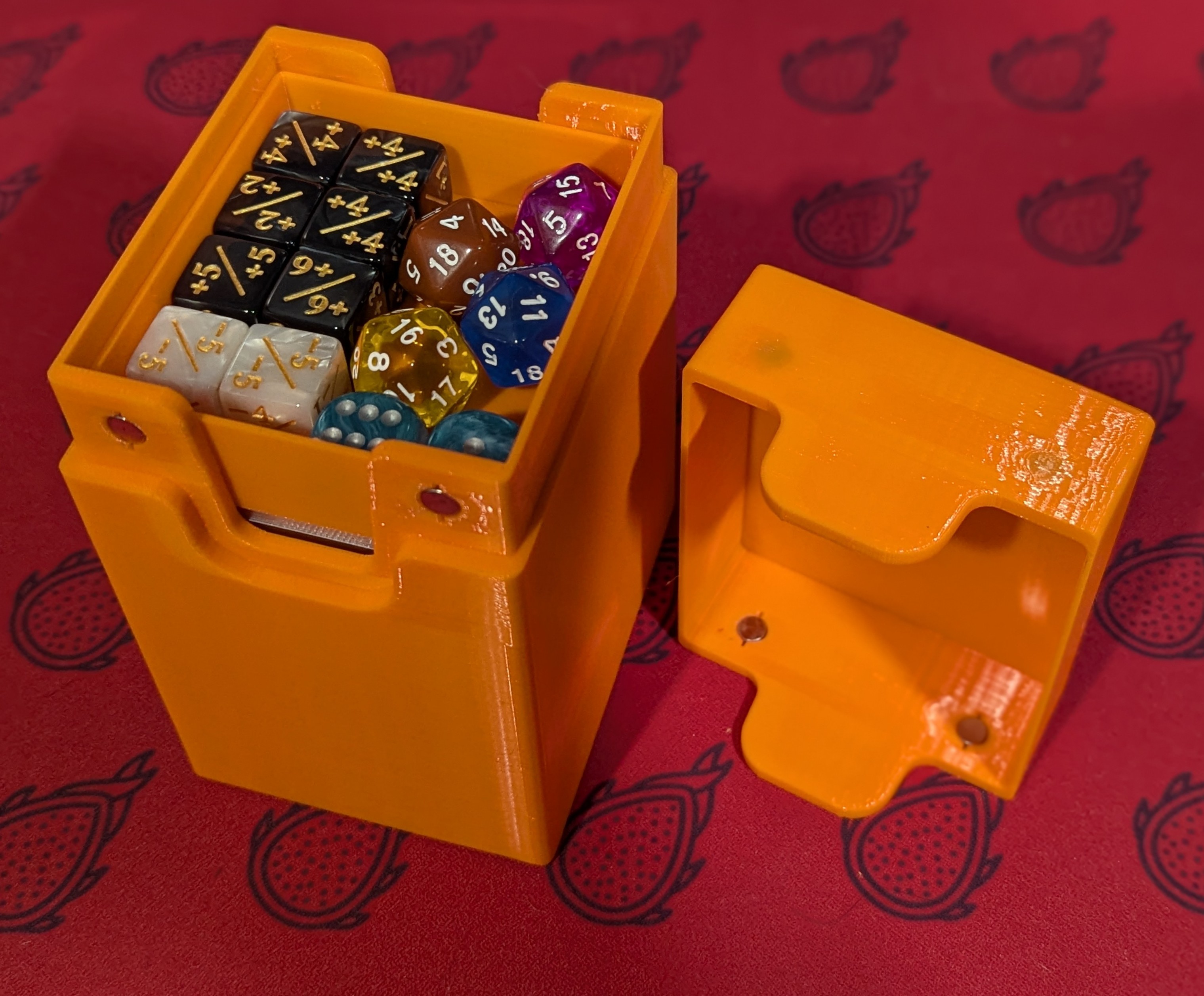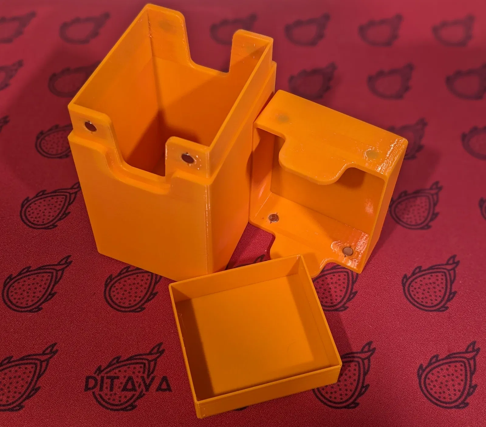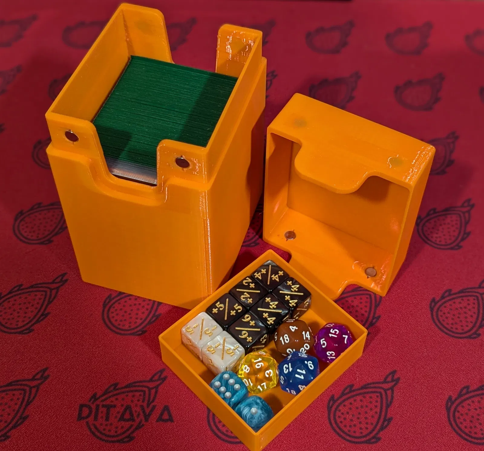 Hộp đựng bài ma thuật nam châm kiêm khay xúc xắc. Có thể chứa hơn 100 lá bài bọc đôi. Hoàn hảo cho các trận đấu Commander/EDH.