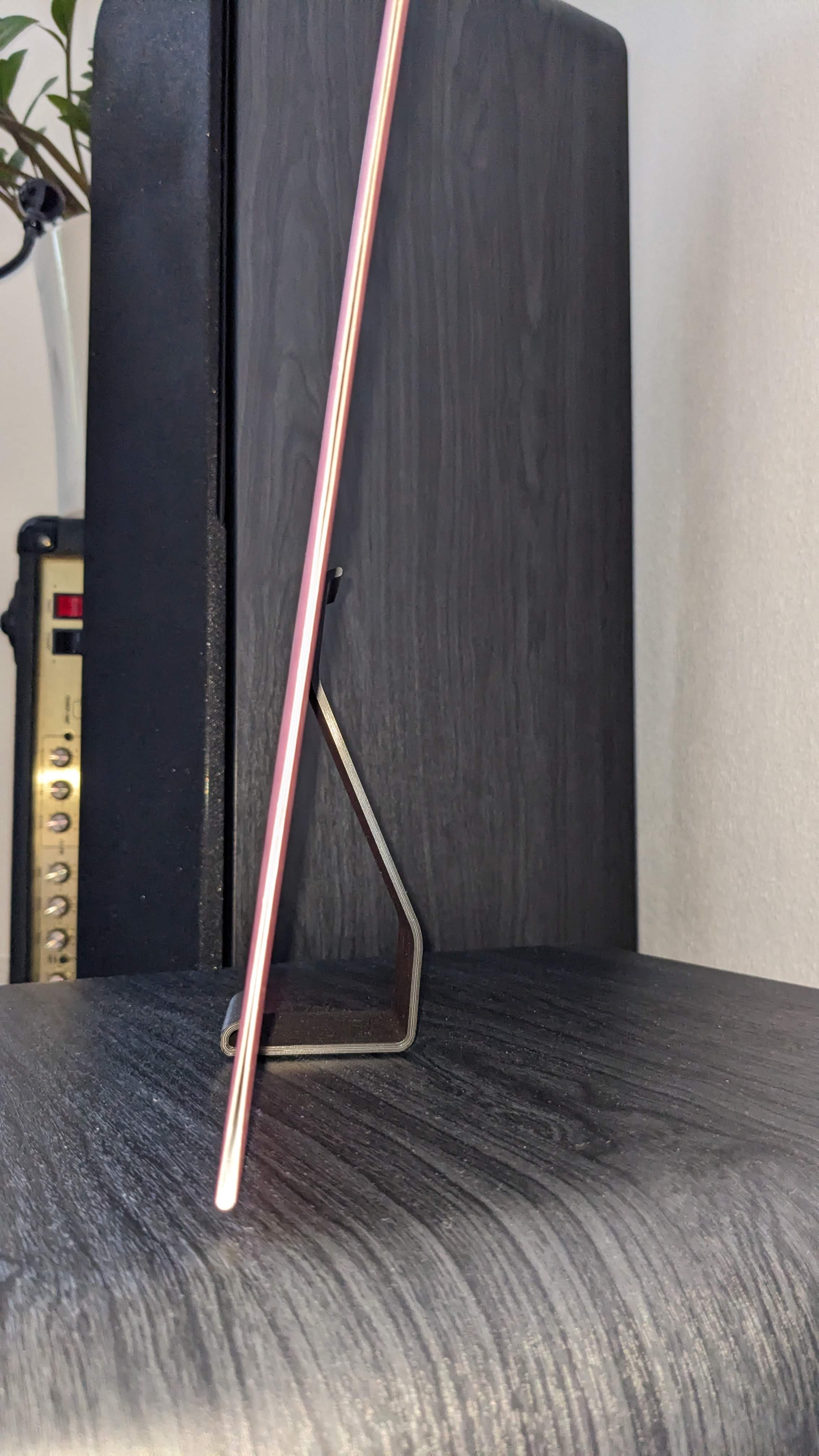 Chân đế đơn giản để trưng bày đĩa than vinyl. Mô hình này được thiết kế để đĩa đứng thẳng, phù hợp với bìa dày tới 8mm, tránh dùng cho bìa gatefold dễ bị lật.