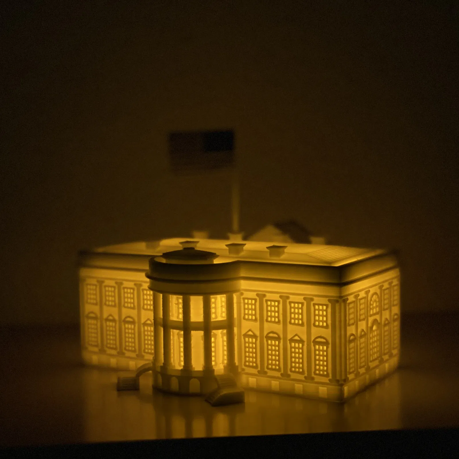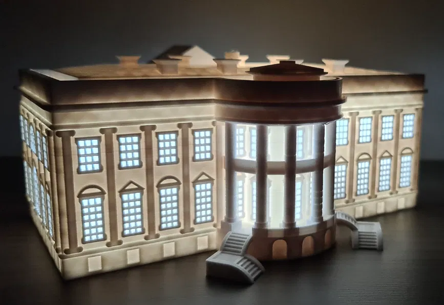 Mô hình đèn lồng Nhà Trắng dễ in, mô tả một trong những tòa nhà chính phủ nổi tiếng nhất thế giới, nơi ở của Tổng thống Hoa Kỳ. Được thiết kế theo phong cách tân cổ điển bởi James Hoban.