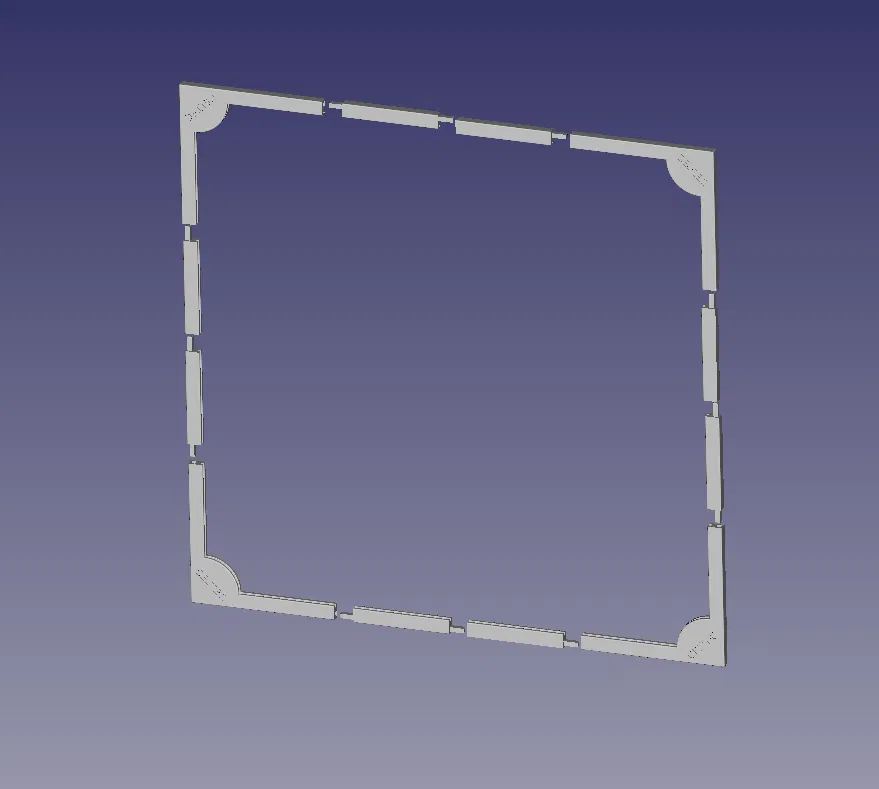 Các Góc có kích thước 150mm theo mỗi Chiều với một rãnh cho Tấm dày 3mm.