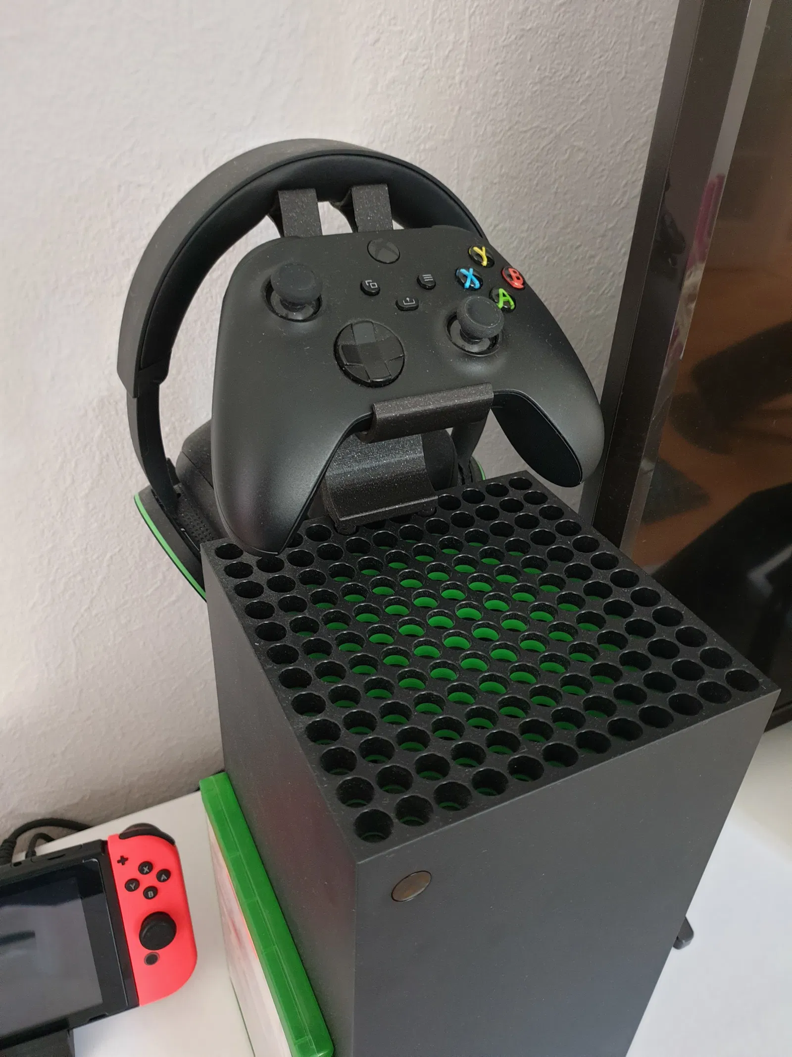 Một thiết kế rất chắc chắn và sạch sẽ mà tôi tạo ra một giá đỡ có tính vào Xbox Series X của tôi để giữ bộ điều khiển và tai nghe. Bạn có thể phải in X nhỏ hơn một chút như 98% -99% để phù hợp hơn.