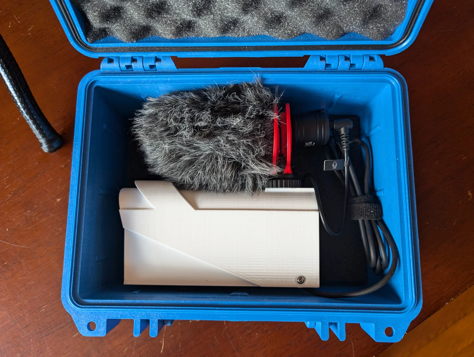 Hè này tui có quay hết mấy trận thể thao của mấy đứa nhỏ đó nha, ngoại trừ mấy trận mưa phùn nhẹ. Nên tui làm cái vỏ này để bảo vệ Mevo Start của bạn khỏi mưa gió, lại còn có cái cold shoe tiện lợi để gắn micro các kiểu nữa.