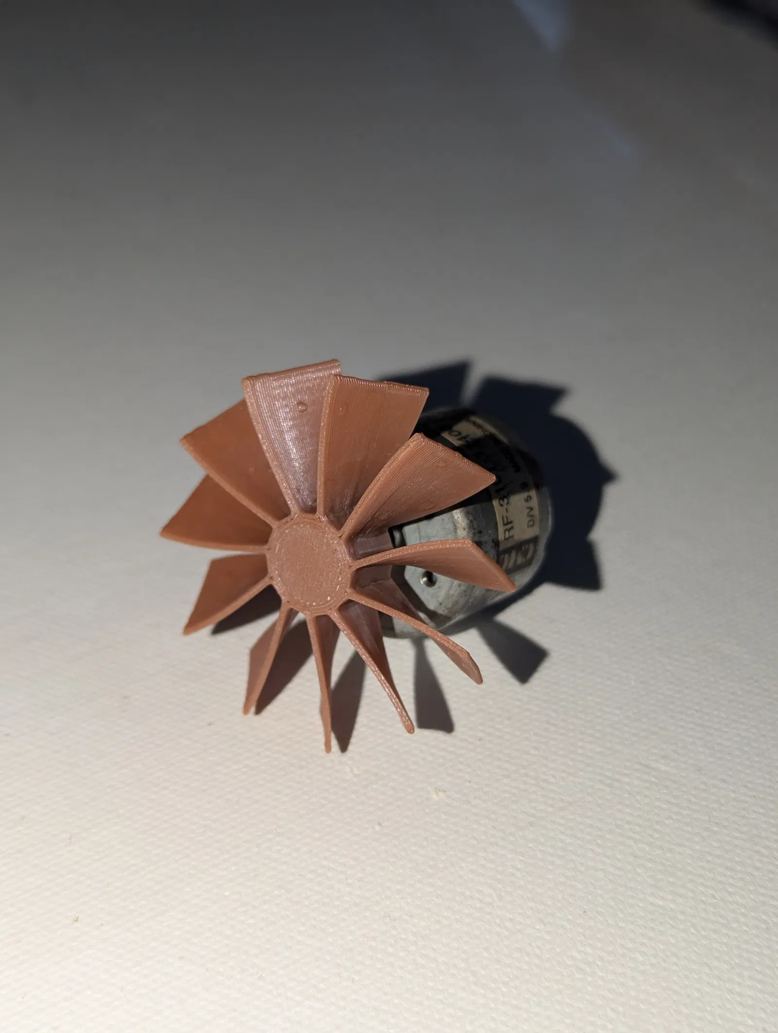 Một chiếc quạt 11 cánh với lỗ 2mm, có thể kết nối với hầu hết các động cơ DC nhỏ.
