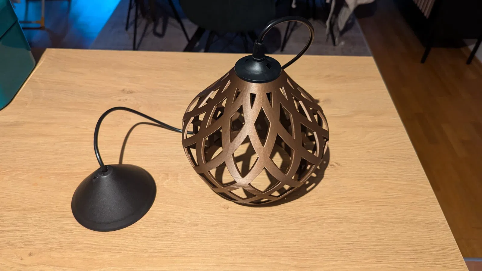 Mẫu chao đèn này được thiết kế lại dựa trên một mẫu có sẵn trên thingiverse, dành cho đui đèn E27. Người thiết kế khuyên nên in chậm lại để có kết quả tốt nhất.
