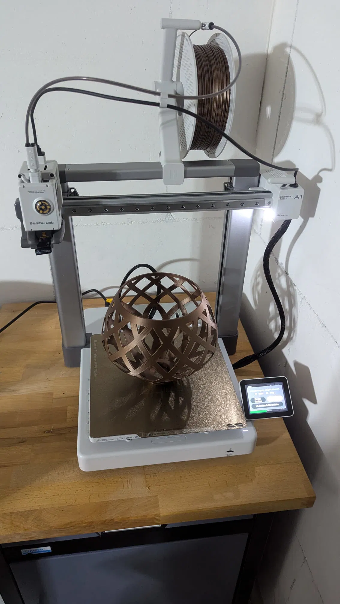 Nhớ chỉnh tốc độ máy in chậm lại nha. Tui gặp chút trục trặc khi in bằng bambulab A1 với tốc độ 150mm/s nên tui đã giảm tốc độ tường ngoài xuống còn 60mm/s. Mất 12 tiếng nhưng tui có được kết quả gần như hoàn hảo.
