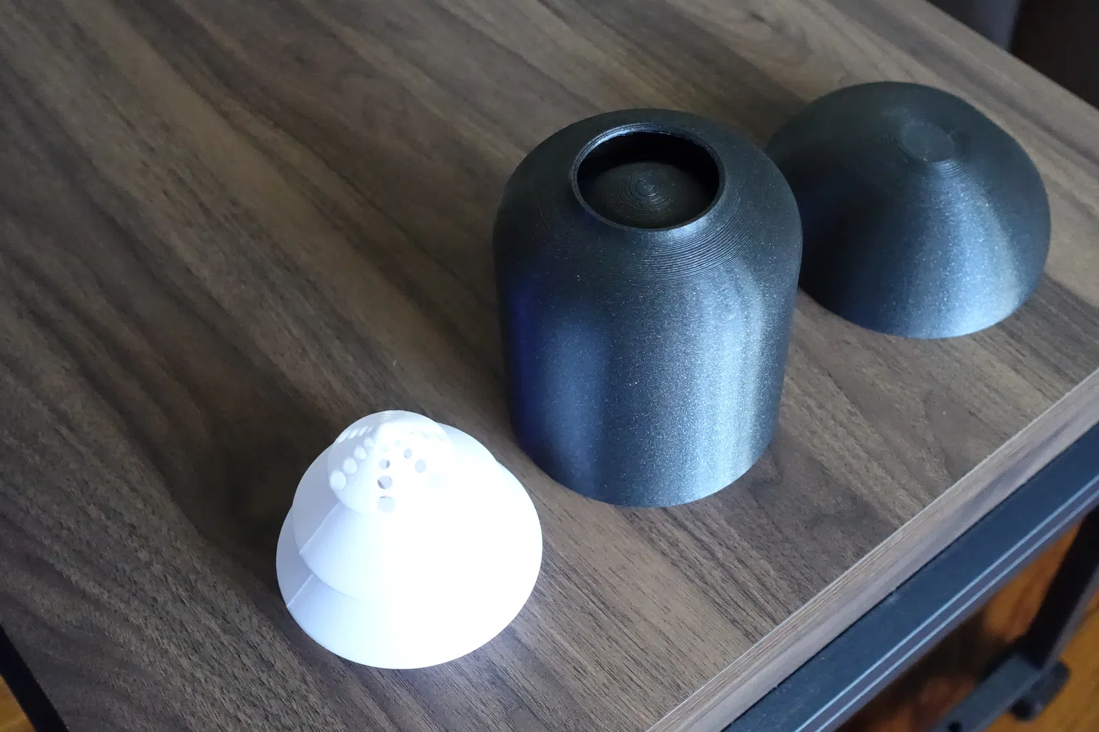 Tui đã in ống khói bằng PLA (Prusament Galaxy Black) không cần support. Nó không hoàn hảo, nhưng đủ tốt rồi. Nắp chụp cũng dùng cùng loại filament, nhưng phải in có support.