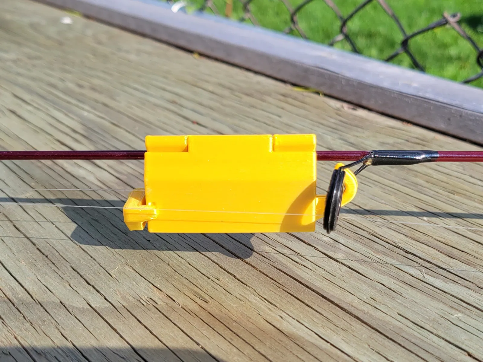 Cất giữ cần câu an toàn mà không cần tháo lưỡi câu ra với cái hộp tiện dụng này. Cái hộp in tại chỗ, dựng đứng lên và có thể cạy mở ra bằng một chút lực. Khi bản lề đã được làm lỏng, hộp có thể được giữ đóng bằng cái lẫy nhỏ.