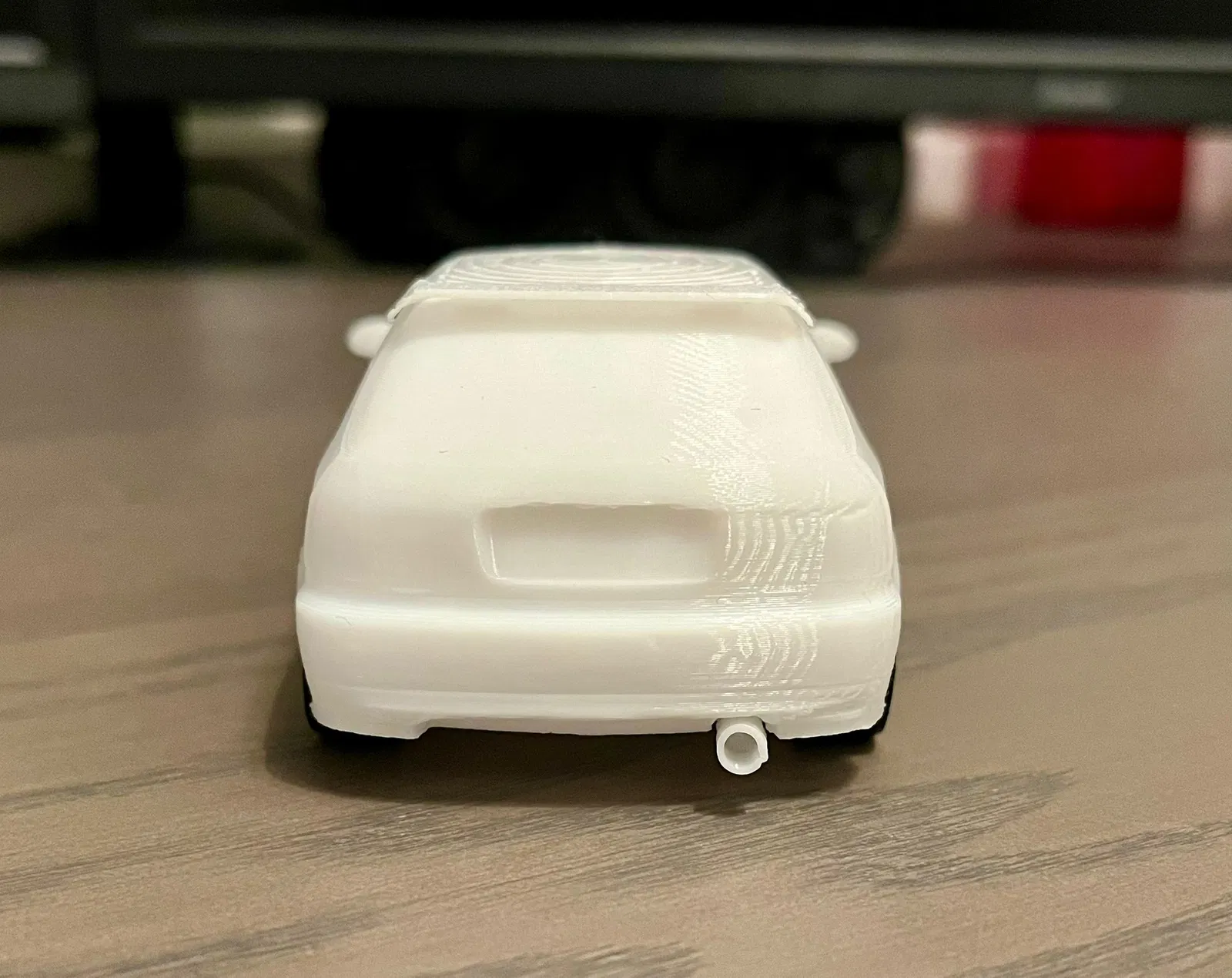 Tóm tắt Đây là mô hình Honda Civic Type R (EK9) theo phong cách kit / thẻ quà tặng. Có thể khám phá một số chi tiết đặc trưng. Xe có cánh lướt gió và ống xả riêng :) Sau khi in xong, mô hình có thể lắp ráp với sự trợ giúp của các khớp nối tích hợp. Bánh xe có thể quay, nhưng xe sẽ không lăn.