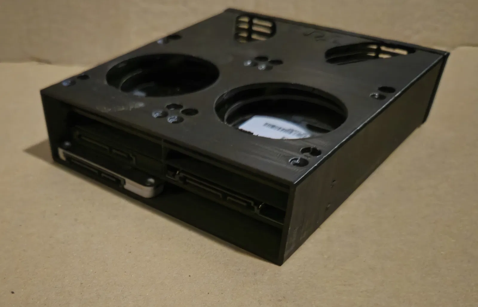 Tui tận dụng cái ổ DVD cũ để làm cái này. Nó chứa được 8 ổ 2.5" x 7mm và vừa khít trong 1 khay ổ 5.25" của máy.