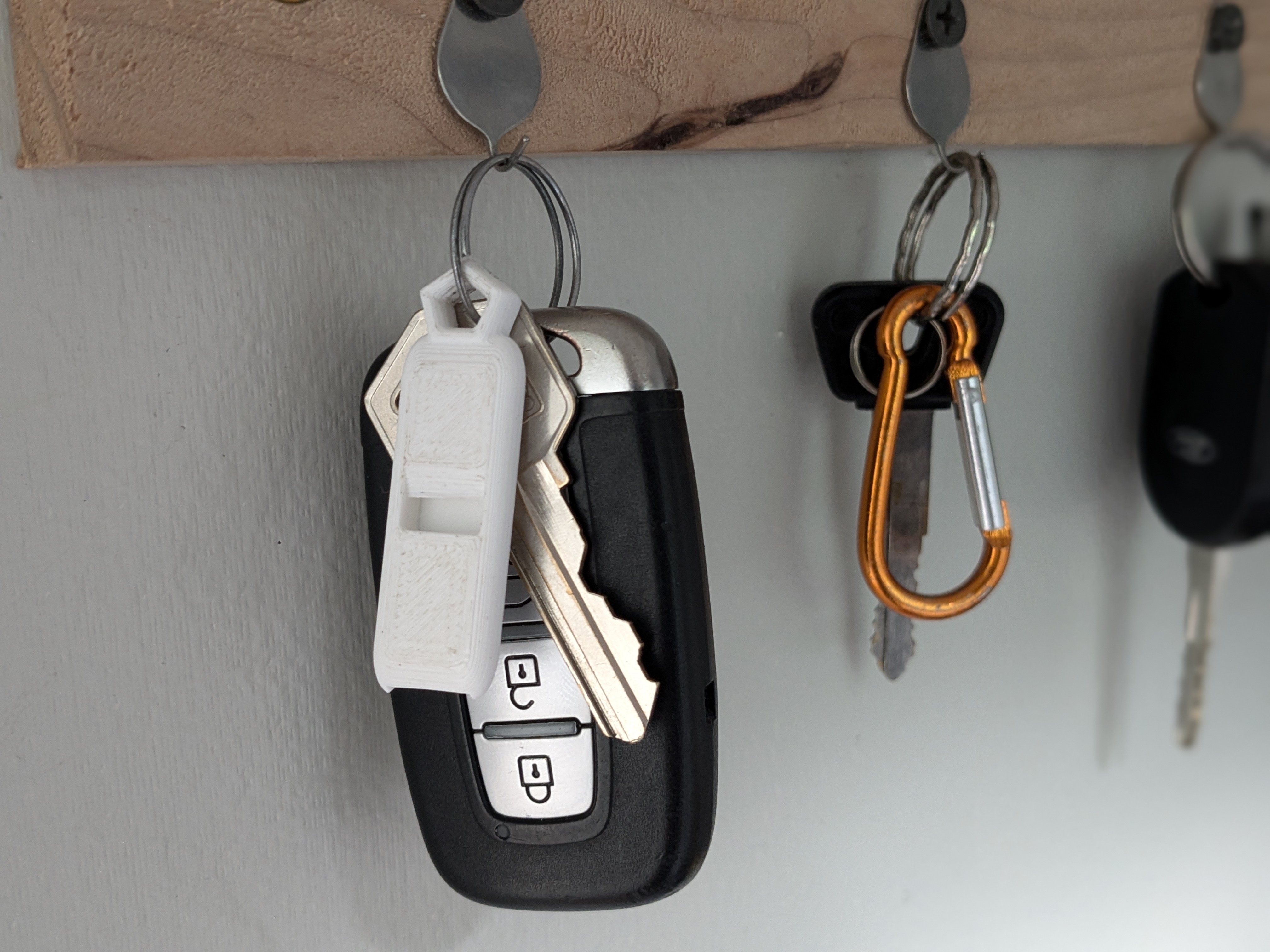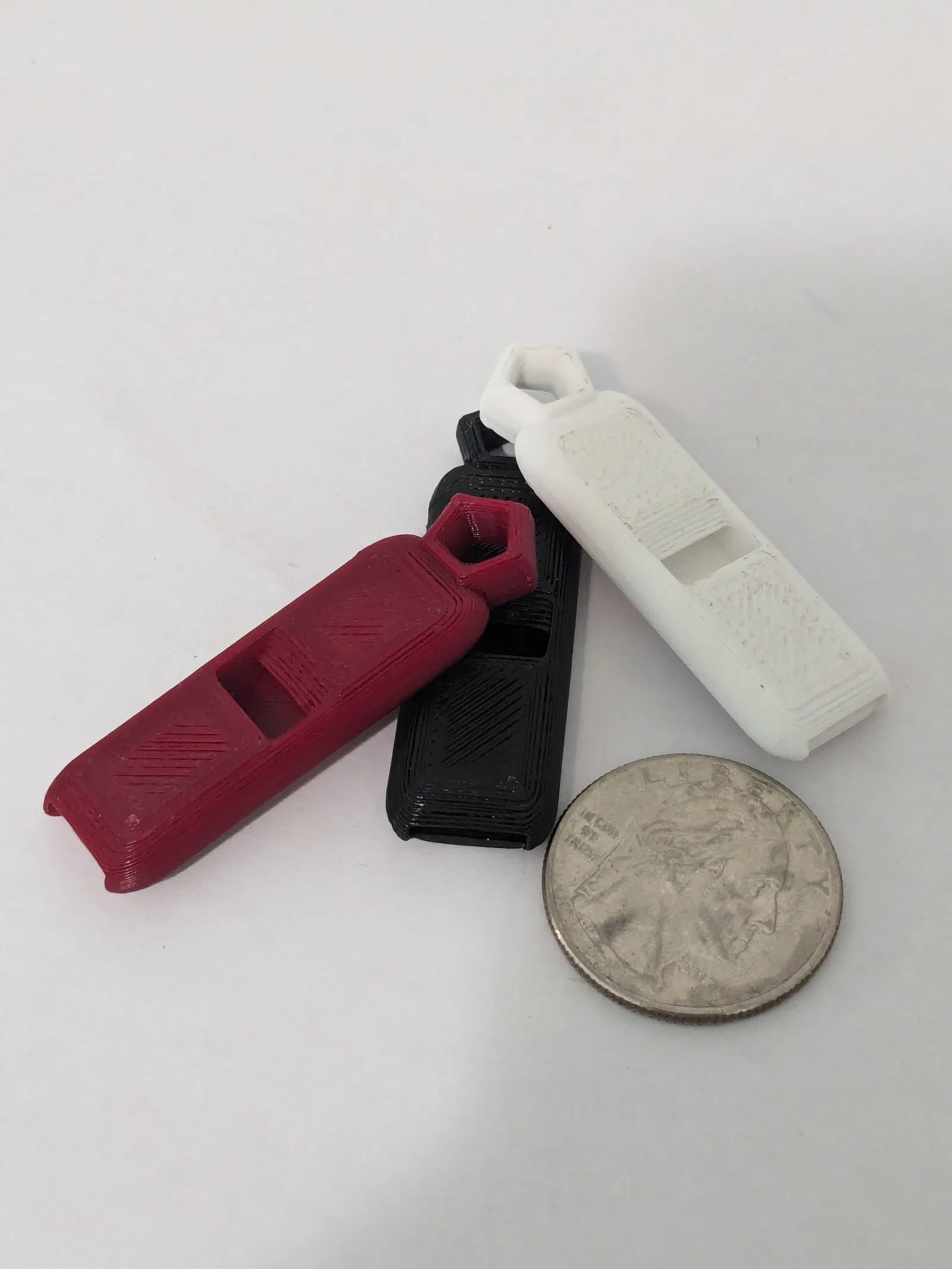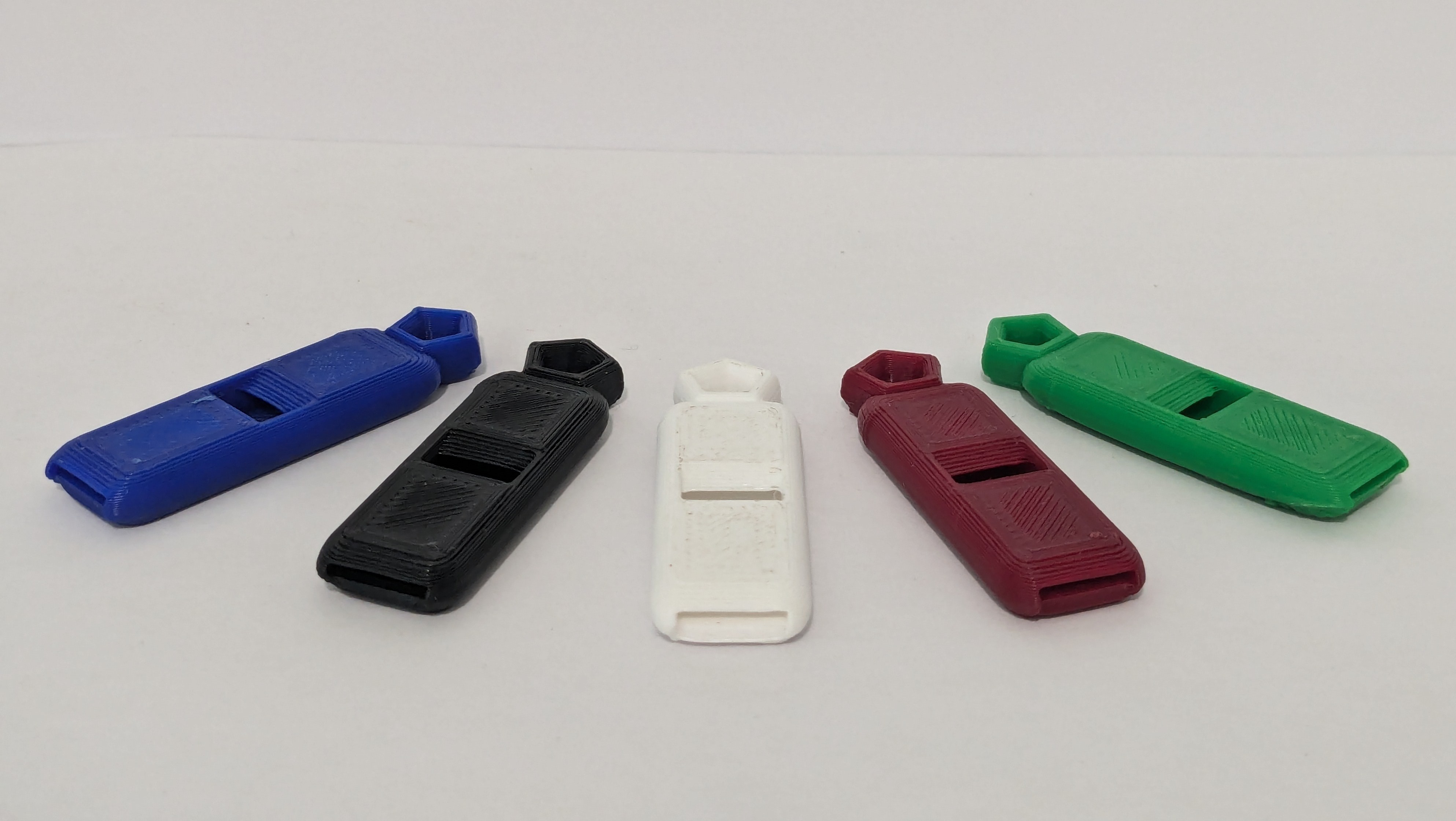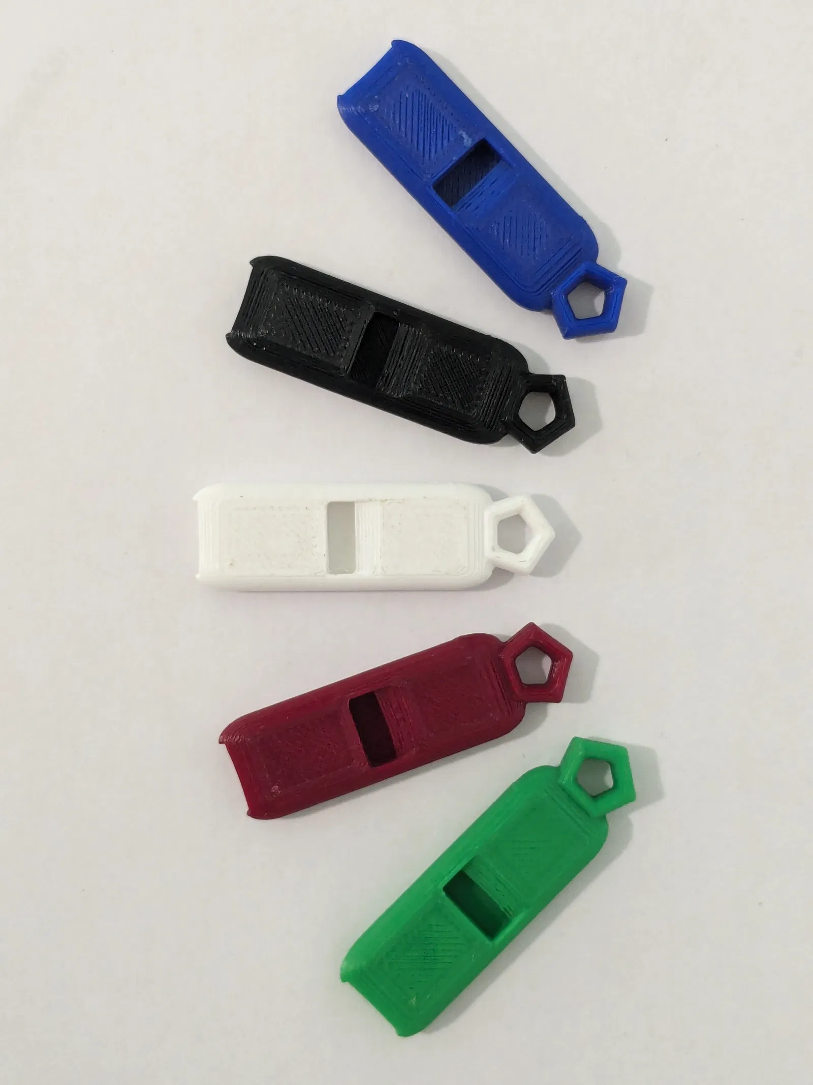 Còi 3 gram, kích thước hoàn hảo, có vòng để bạn mang theo khi đi thuyền. Bạn cũng có thể để nó trên ba lô, móc khóa, trong túi, hoặc bất cứ đâu! Khi bạn đi câu cá trên thuyền, bạn có thể mang theo phòng trường hợp khẩn cấp. Bạn có thể phải thổi mạnh hơn một chút nhưng nó rất lớn! Tùy thuộc vào cài đặt của bạn, bạn có thể in nó trong 10-20 phút!