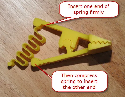 4. Sau đó, nén lò xo cho đến khi đầu kia khớp vào ổ cắm của nó. Nếu lần đầu không vào hết, hãy thử căn chỉnh lại lò xo và bóp cái kẹp ra.