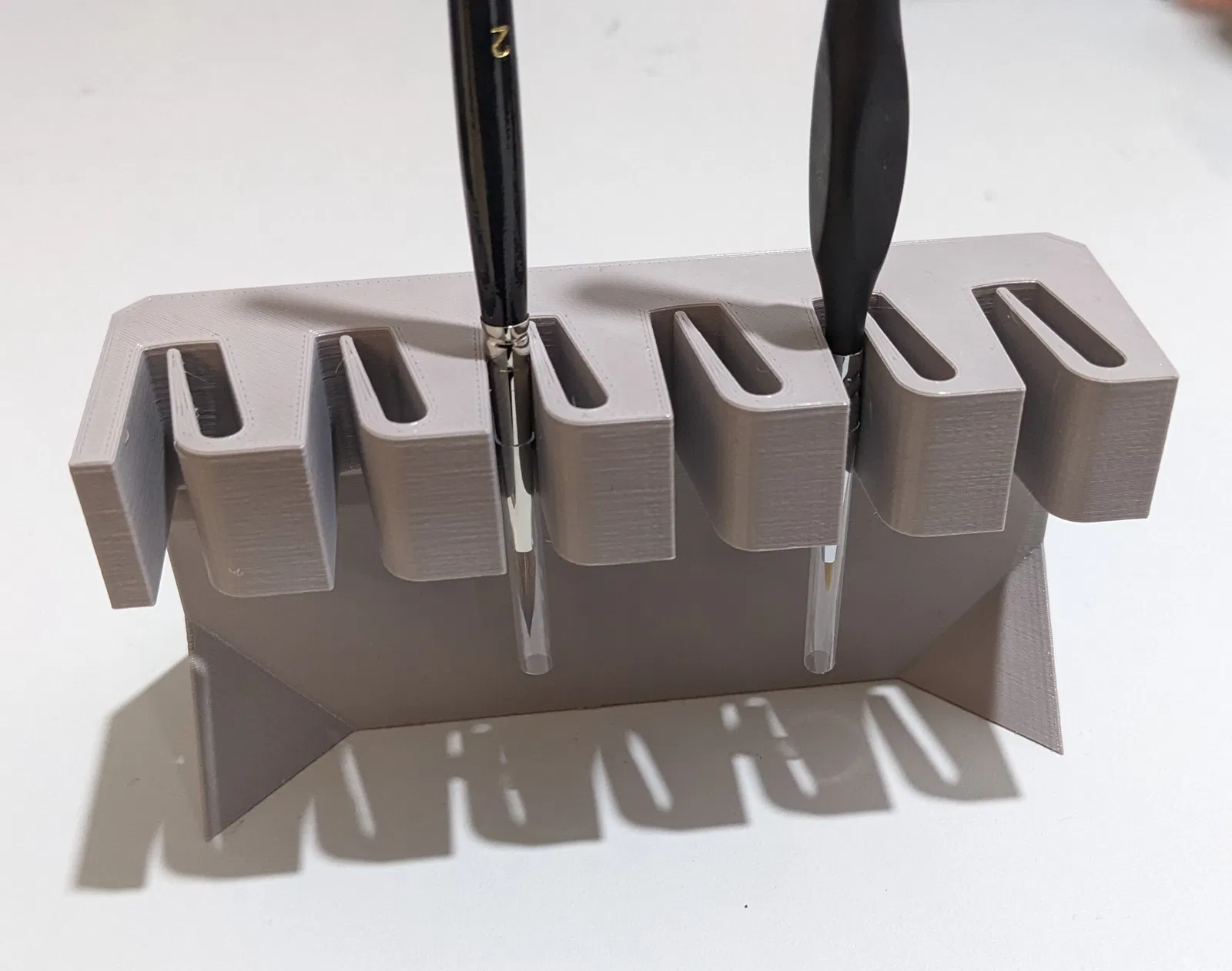 Mẫu giá để cọ treo ngược giúp bảo vệ và kéo dài tuổi thọ cho cọ vẽ của bạn. Thiết kế độc đáo, dễ in ấn không cần support, chỉ cần thêm ốc và keo epoxy để giữ đế vững chắc. Phù hợp cho cọ có đường kính từ 3.5 - 5.5 mm.
