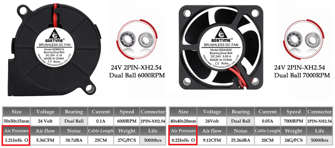Trong ví dụ này, quạt 5015 có áp suất khí gấp 5.5 lần quạt 4020!!! Một sự khác biệt quá lớn để bỏ qua!!!