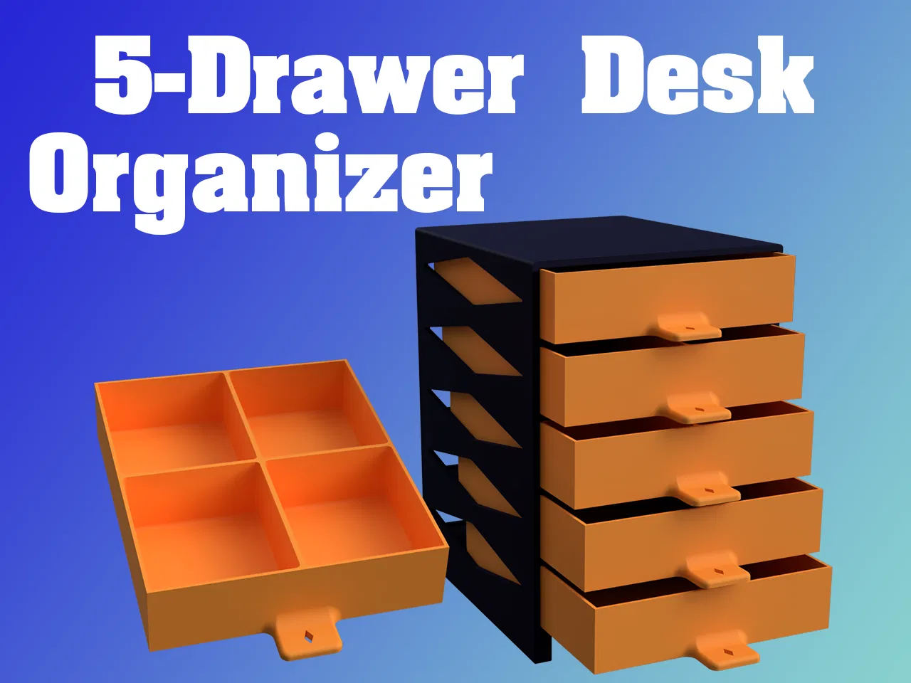 Tối ưu không gian làm việc của bạn với bộ 5 ngăn kéo đựng đồ trên bàn này. Hộp đựng đồ đơn giản, tiện dụng, có năm ngăn kéo PLA để lưu trữ vật dụng văn phòng nhỏ và có thể thêm chân TPU để tăng độ bám.
