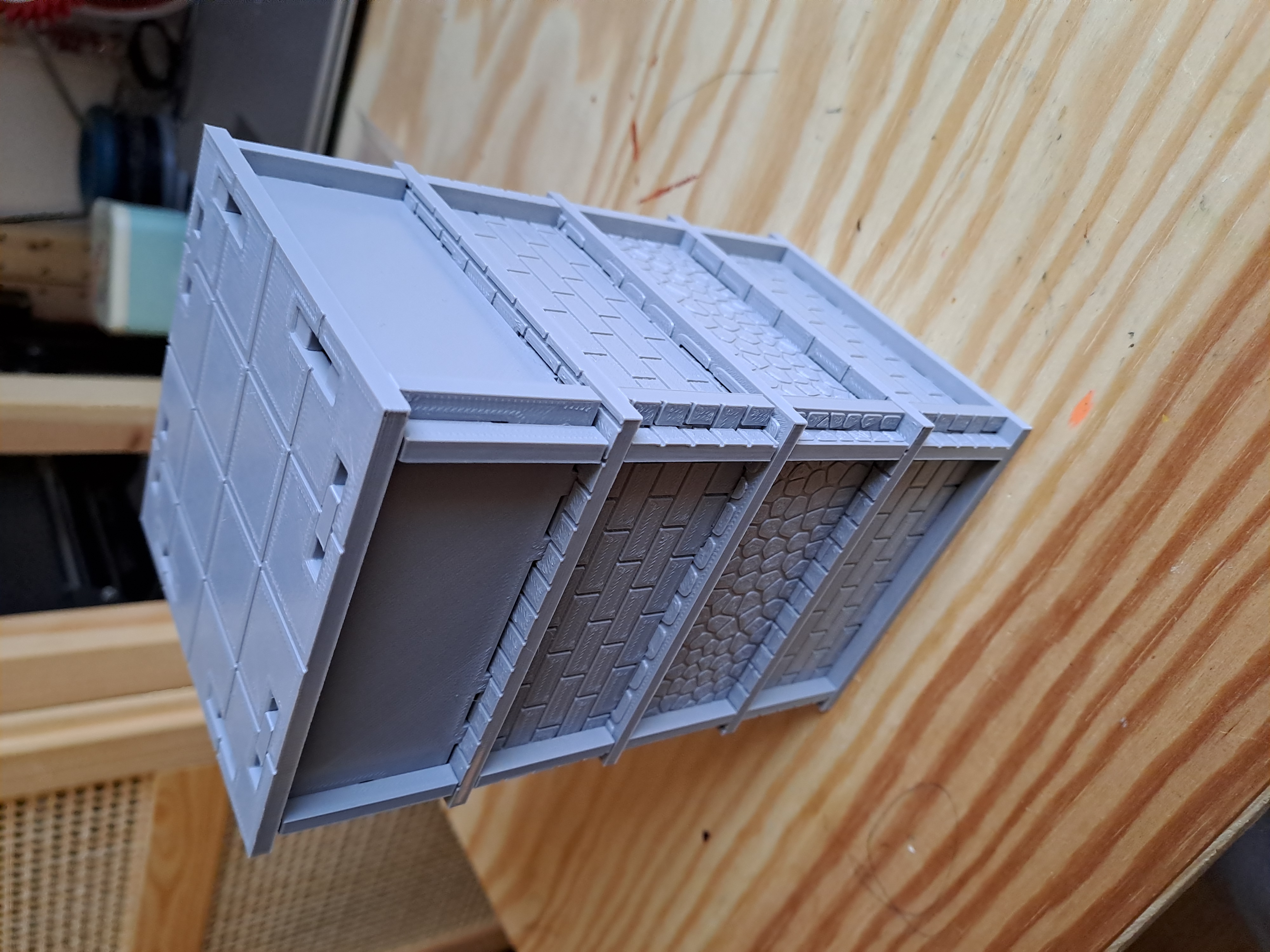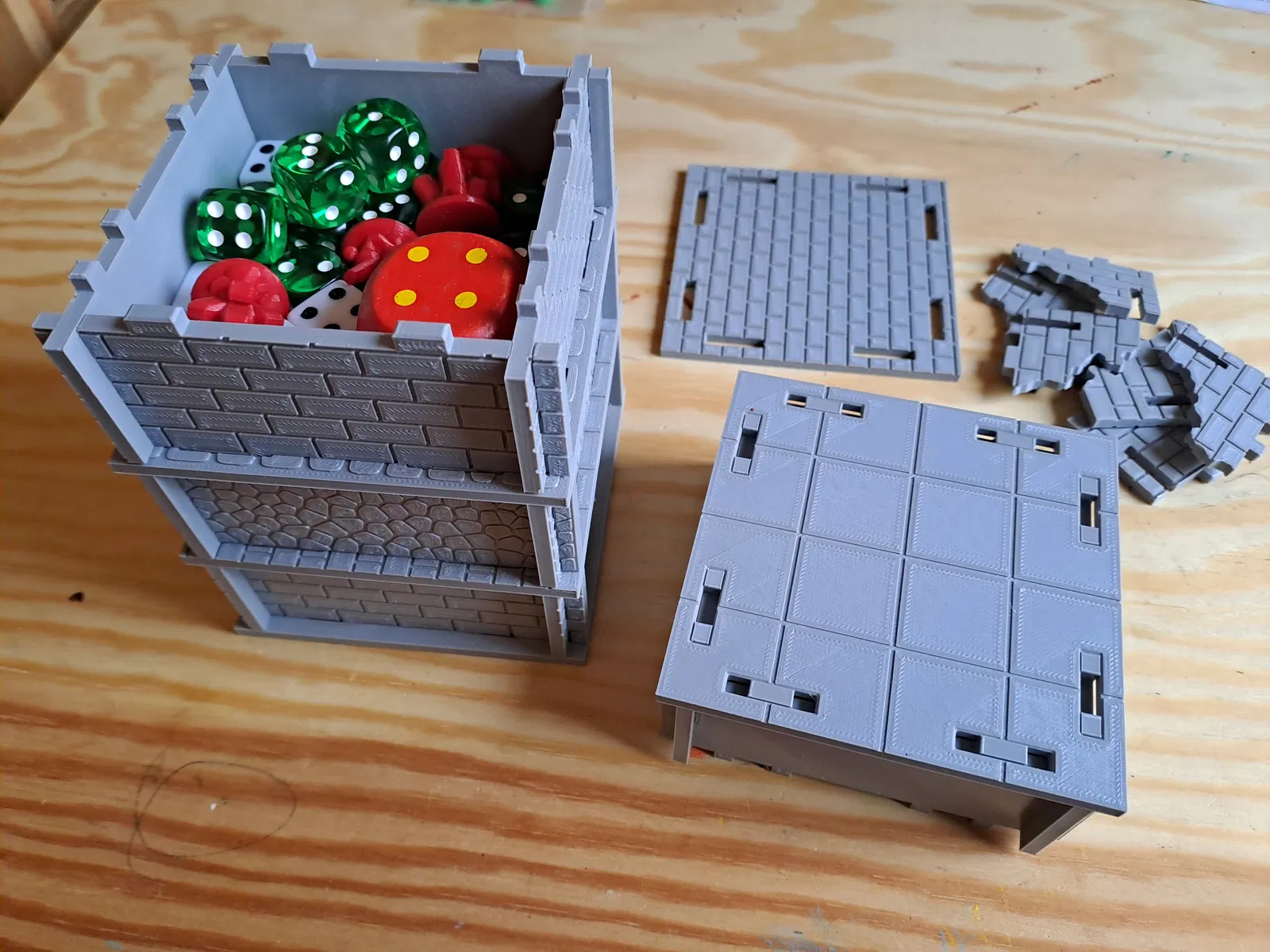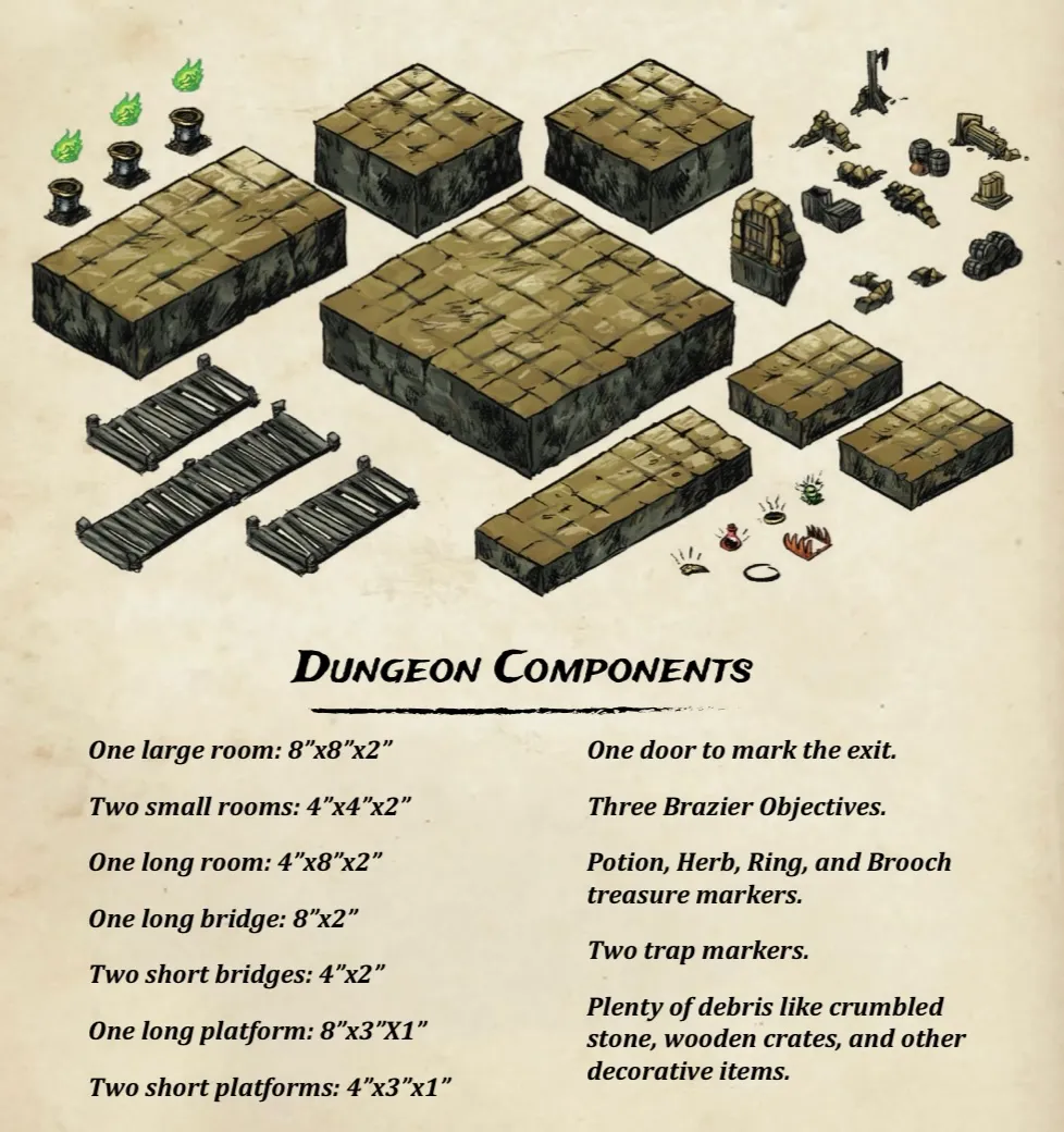 Có đầy đủ các bộ phận cho các cảnh, ngoại trừ các địa hình rải rác và các vật thể nhỏ hơn. Để có phòng dài và lớn, bạn chỉ cần ghép 2 hoặc 4 phòng lại với nhau. Bạn cũng có thể làm tương tự với bệ đỡ dài. Đối với ba vật thể đuốc, mình xin giới thiệu của BeardedJester, cái này in trên máy in FDM cũng rất tốt.