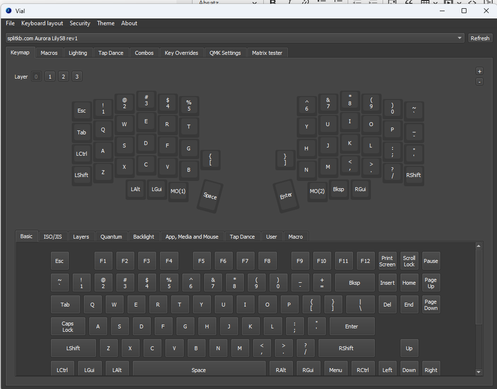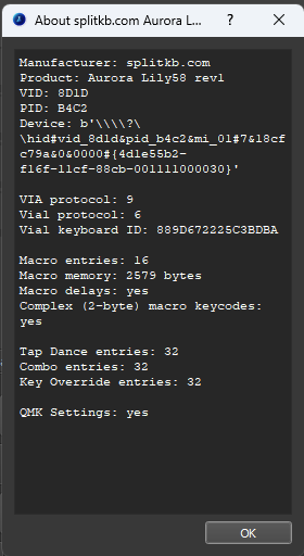 Vì tui không thích firmware QMK được biên dịch sẵn từ splitkb.com làm cho việc thay đổi keymap tại chỗ khó khăn nên tui đã tạo một keymap / firmware VILA cho nó mà bạn có thể tìm thấy trên github của tui https://github.com/Gabbajoe/vial-qmk/tree/splitkb_lily58 trong thư mục keyboards/splitkb/aurora/lily58/keymaps/vial hoặc vial-liatris nơi tui đã tắt led nguồn của bộ vi điều khiển.