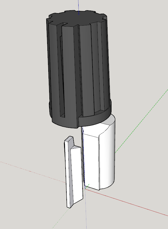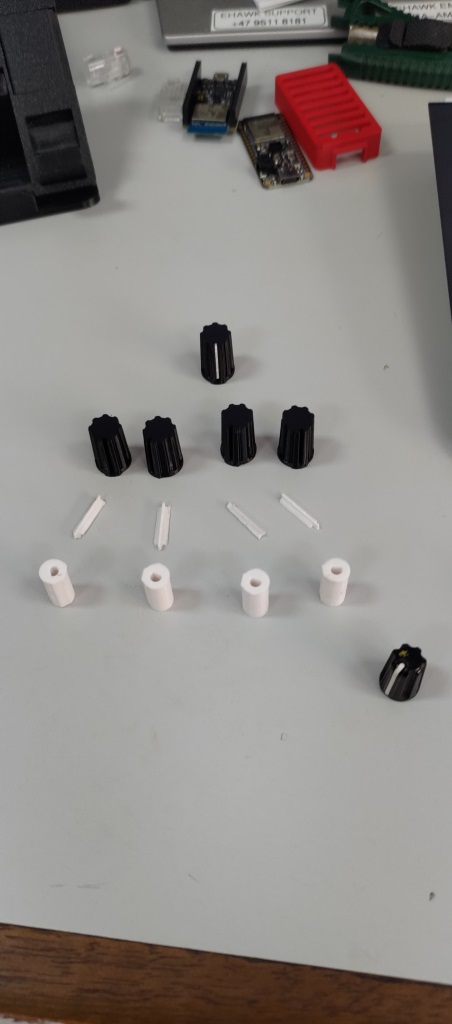 Núm xoay gồm 3 phần: phần ngoài in bằng PLA, và phần trong in bằng PETG.