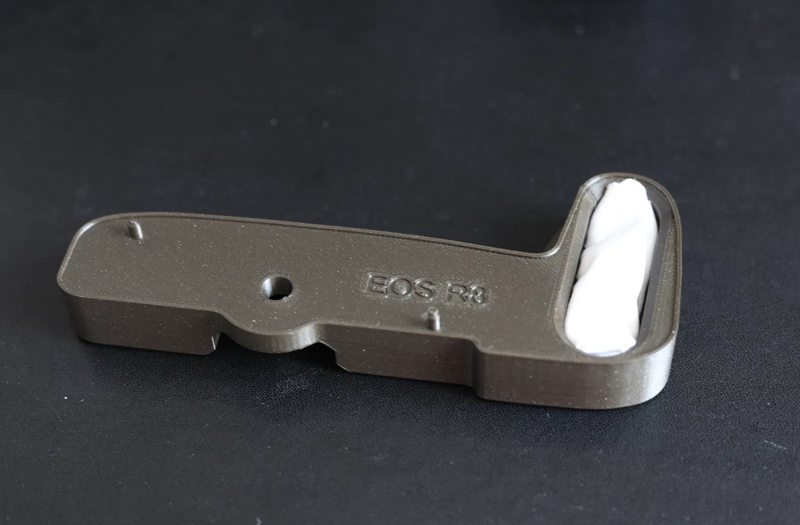 Mấy cái báng cầm mở rộng cho Canon R8 thì có bán đó, của Canon hay hãng khác cũng có luôn, mà mắc thấy bà luôn. Tui thấy cái mẫu cho Canon RP rồi tui chỉnh sửa lại cho hợp với tui hơn. Bản này cao hơn chút, có cái gờ ở dưới báng cầm cho chắc, ôm sát vô cái đế máy hơn, với in kiểu mới ngon hơn nè! Quan trọng là kiểu in mới cho phép in thêm cái chốt định vị để chống xoay luôn nha!