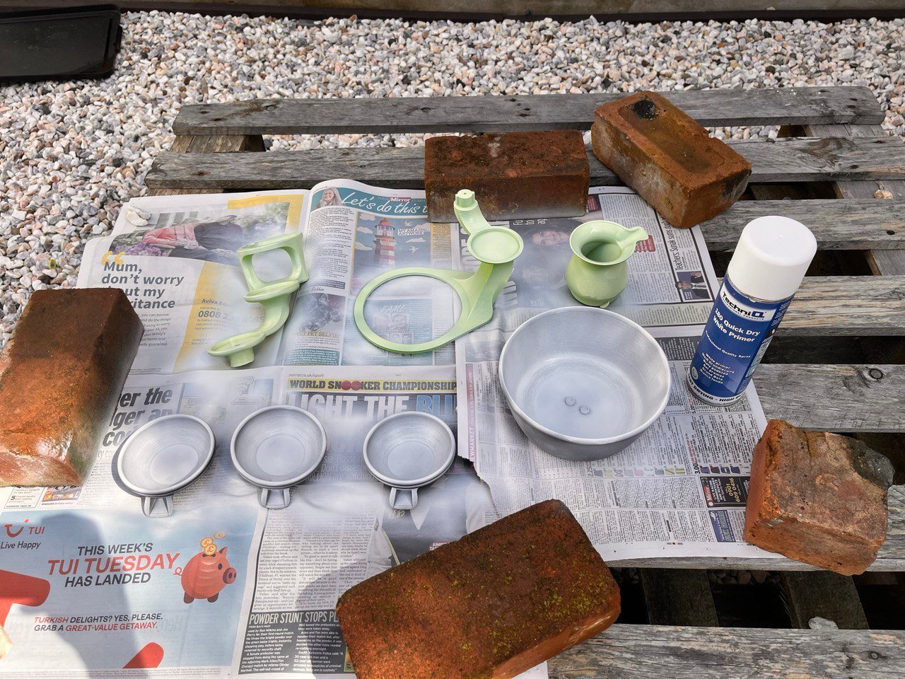 - Bước 1: Sơn lót (Primer) lên các bộ phận in, giúp lớp sơn tiếp theo bám dính vào nhựa.
