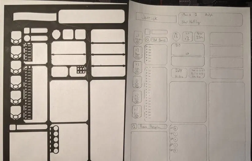 Khuôn Vẽ Bảng Nhân Vật D&D
