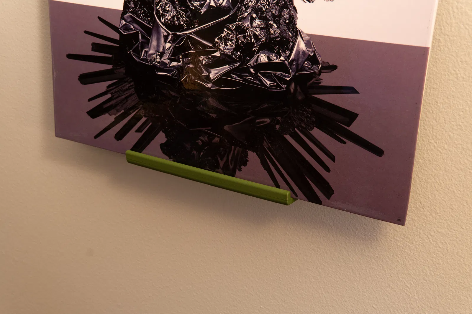 Đây là một cái kệ đơn giản nhưng chắc chắn, có thể dùng để trưng bày đĩa nhạc vinyl mà không cần lộ chi tiết gắn kết hoặc phải khoan lỗ trên tường.