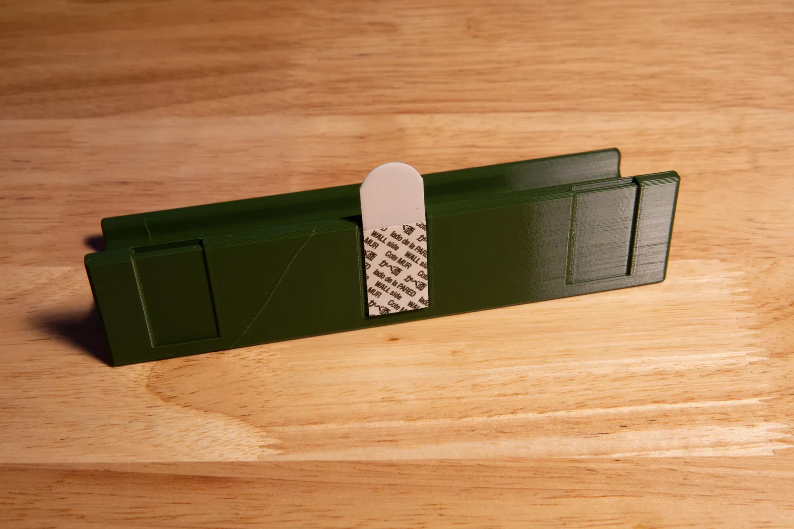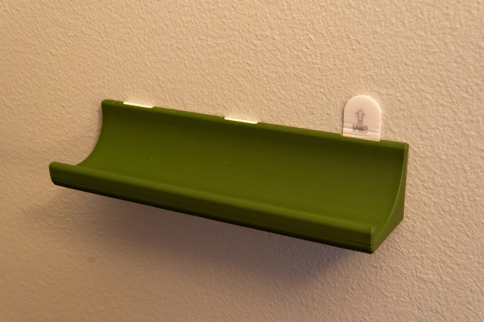 Kệ này được thiết kế để sử dụng 3 miếng miếng dán tường 3M cỡ poster để gắn chắc chắn lên tường, đồng thời dễ dàng tháo gỡ mà không làm hỏng sơn hay tường thạch cao. Các miếng dán được đặt theo chiều dọc, tức là theo hướng chịu lực mạnh nhất của chúng, với phần tai nút màu trắng hướng lên trên.