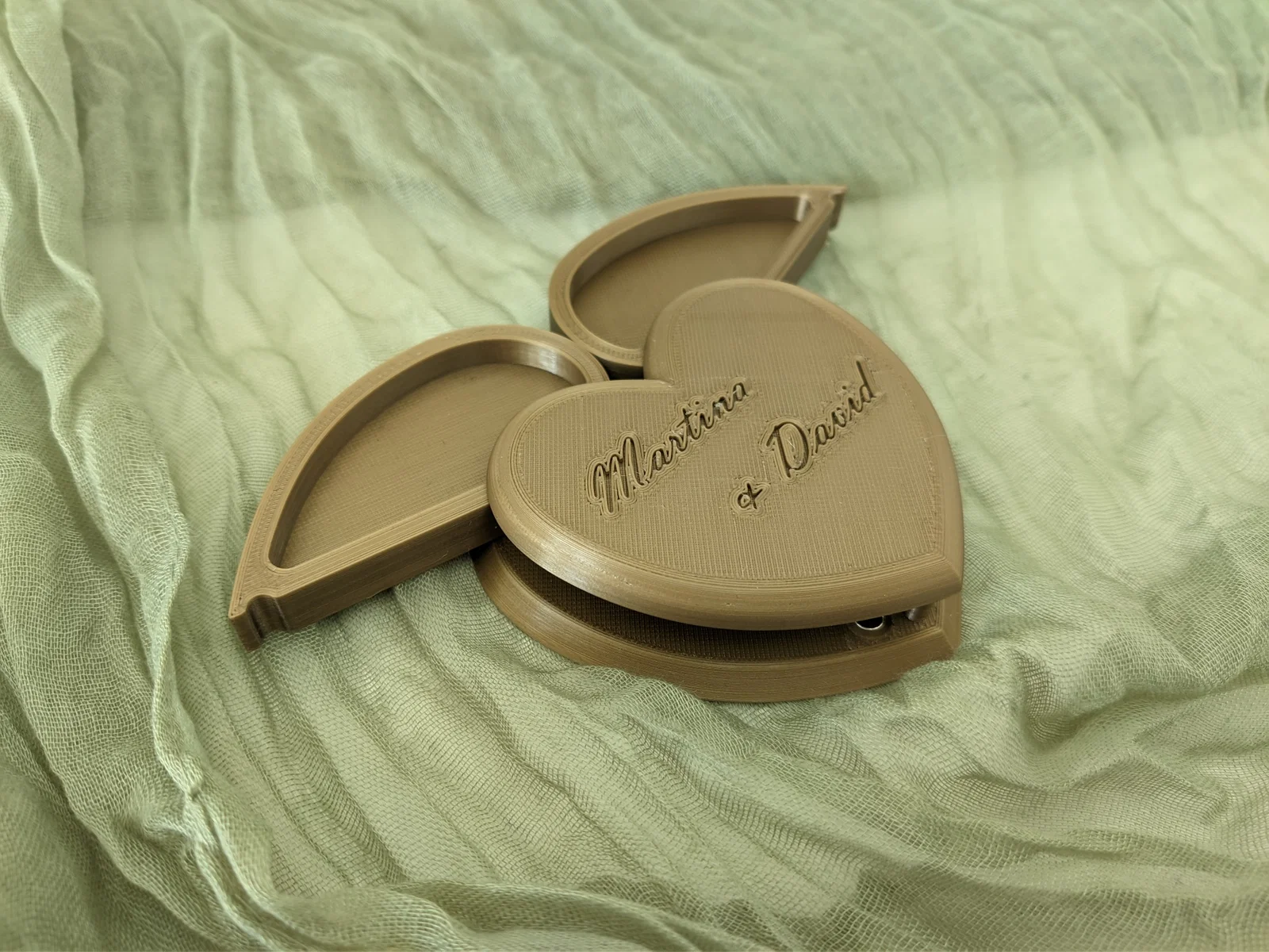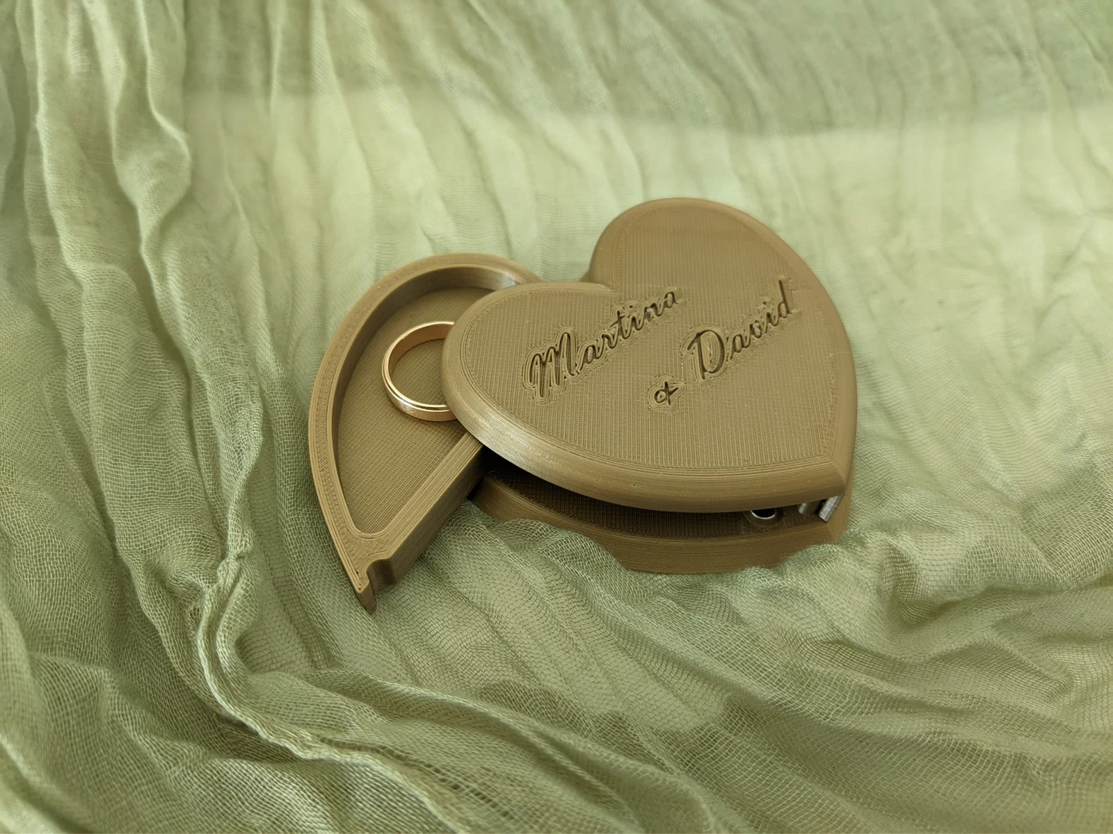 Phần nắp có thể tùy chỉnh với bất kỳ văn bản nào trong phần mềm cắt lớp (slicer). Nhờ có nam châm, hộp này rất thích hợp nếu bạn muốn con nhỏ của mình cầm nhẫn trong buổi lễ.