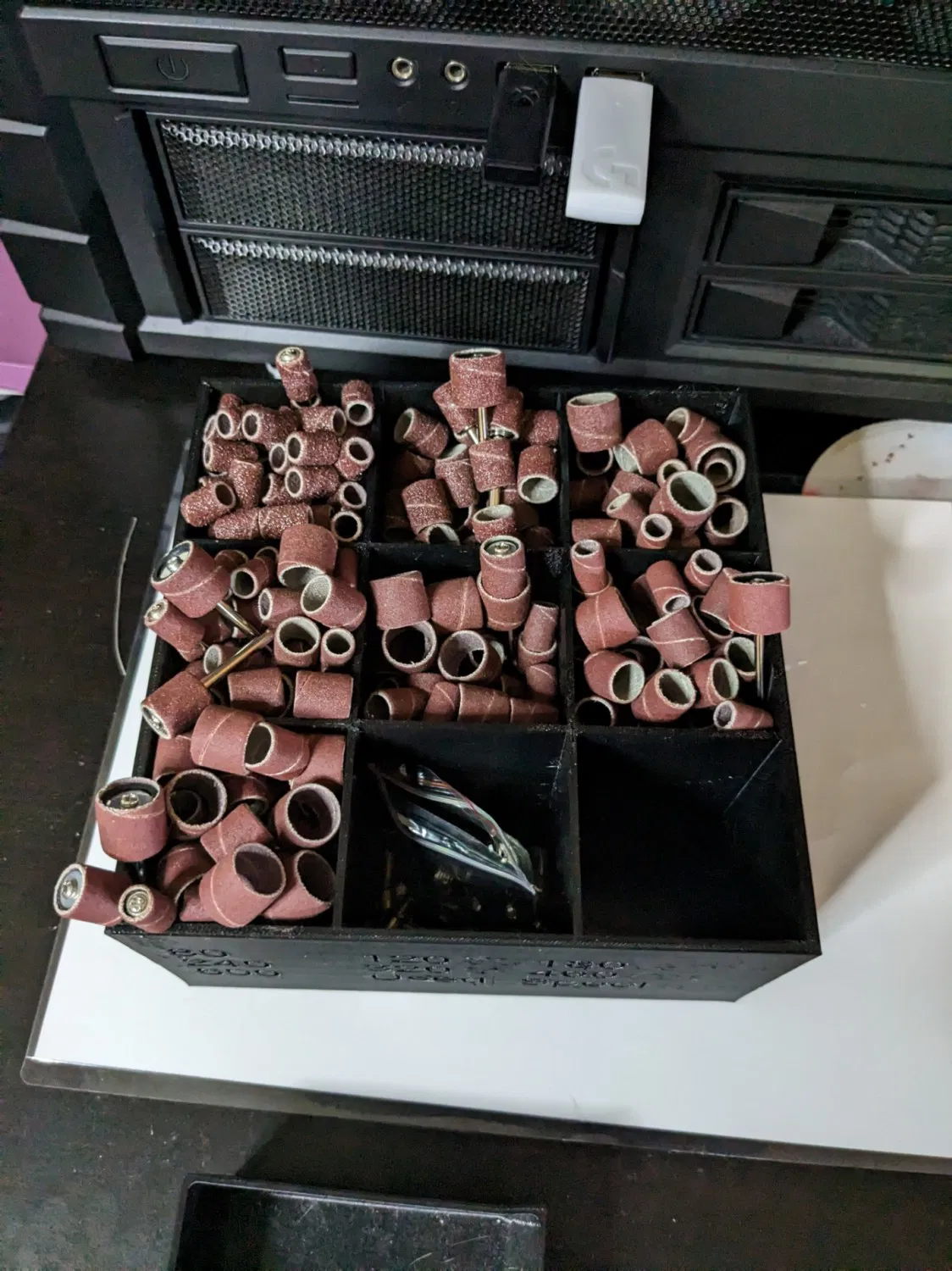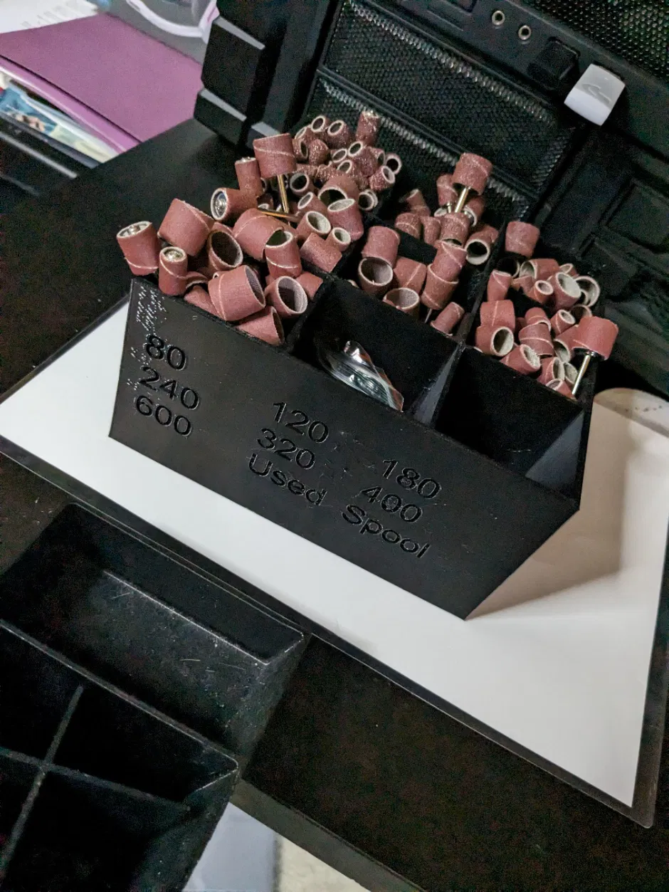 Người tổ chức giấy nhám Dremel mà tôi đã thực hiện để tách các loại trống giấy nhám khác nhau.