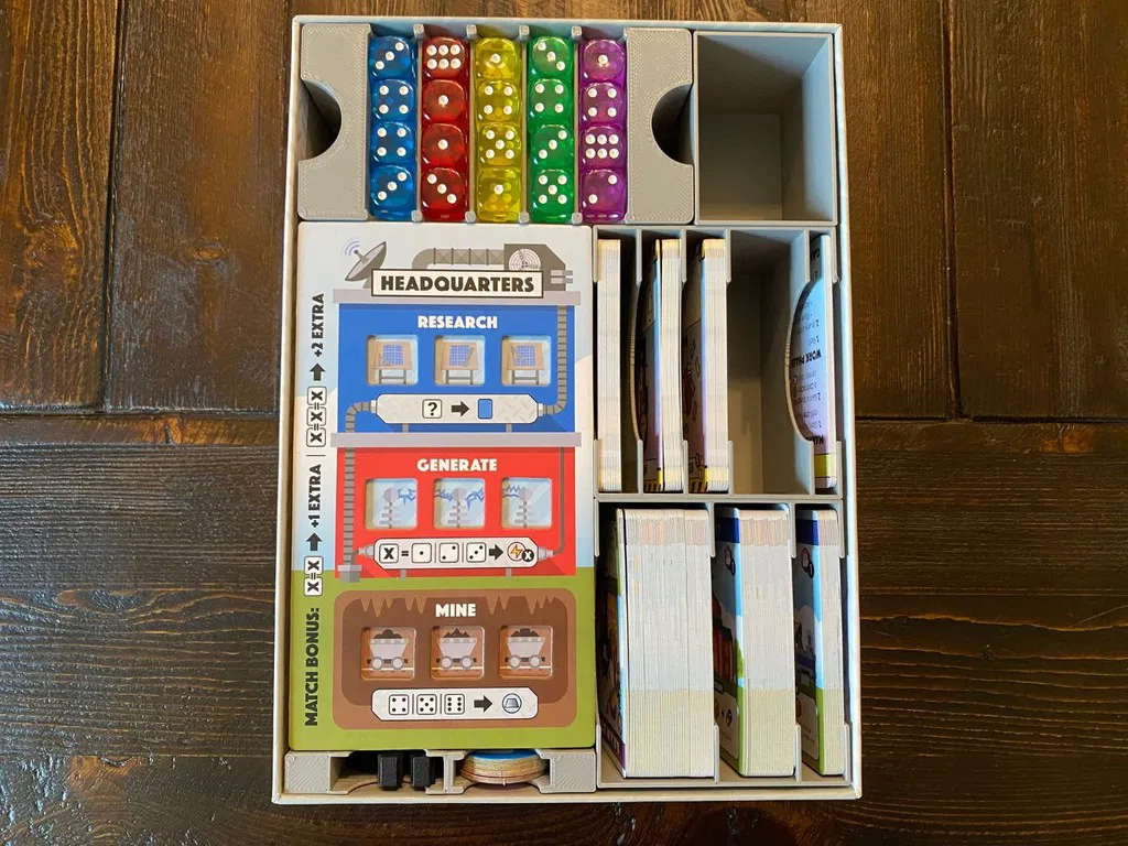 Đây là một bộ insert / organizer dành cho Fantastic Factories kèm theo các bản mở rộng Manufactions và Subterfuge. Nó chứa mọi thứ trong hộp chính và có các vách ngăn cho các bản thiết kế (blueprints) và nhà thầu (contractors) từ game gốc và cho mỗi bản mở rộng. Hai khay đựng tài nguyên có thể đặt ở hai đầu đối diện của bàn để mọi người dễ dàng tiếp cận. Mọi thứ đều nằm gọn trong hộp và nó vượt qua bài kiểm tra lắc ngược khi tất cả các khay được đặt đúng vị trí.