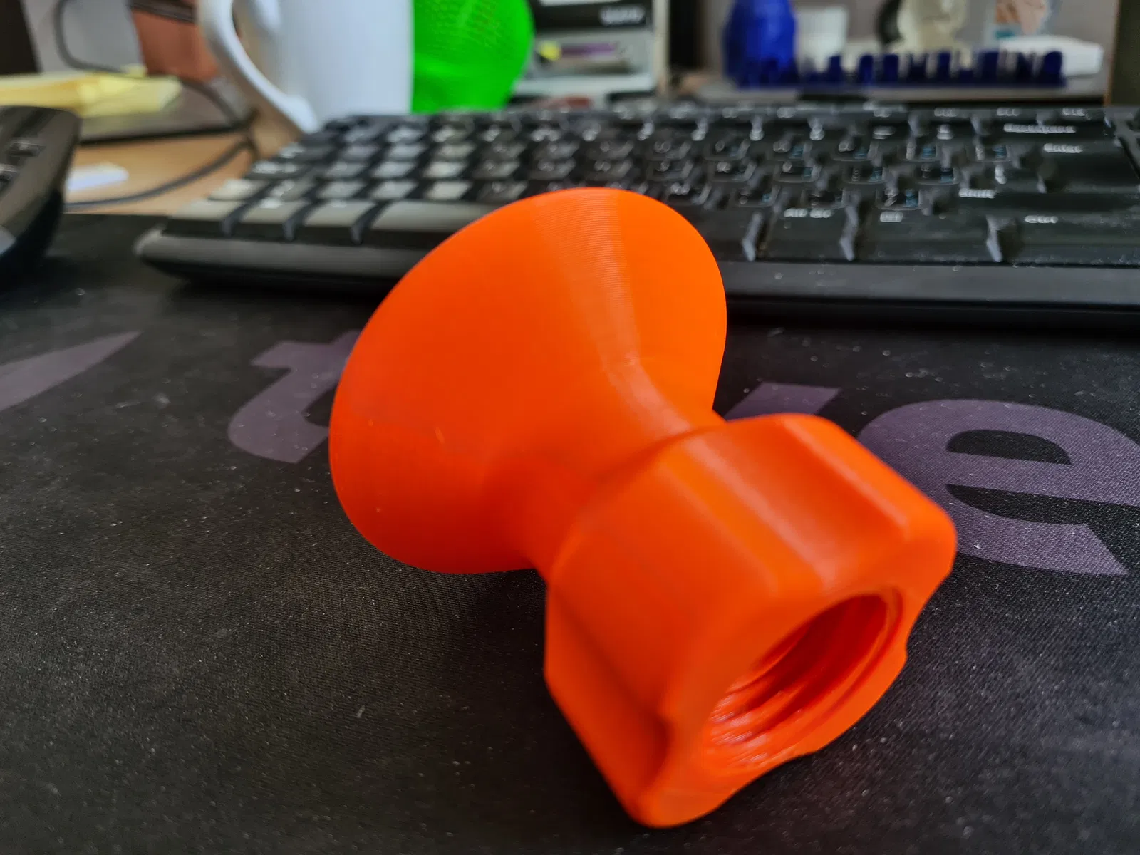 Vòi tưới hoa gắn được vào chai PET ren DIN28. Thiết kế mới, không bị xì nước, ren chuẩn DIN28. Khắc phục vấn đề ren không khớp của các mẫu cũ. In bằng PETG để đảm bảo độ bền và khả năng chống rò rỉ nước.