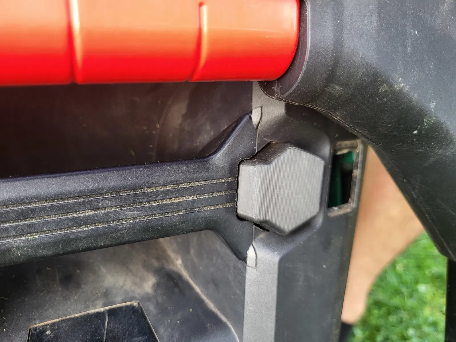 Bạn của tui có nhờ tui sửa máy cắt cỏ giùm. Cái nút chỉnh độ cao của máy bị gãy, bả hỏi tui có cách nào dán lại mà cho nó cứng cáp hơn cái nút zin không. Phương án dự phòng mà bả kiếm được là chêm mấy con ốc vô để khóa độ cao.