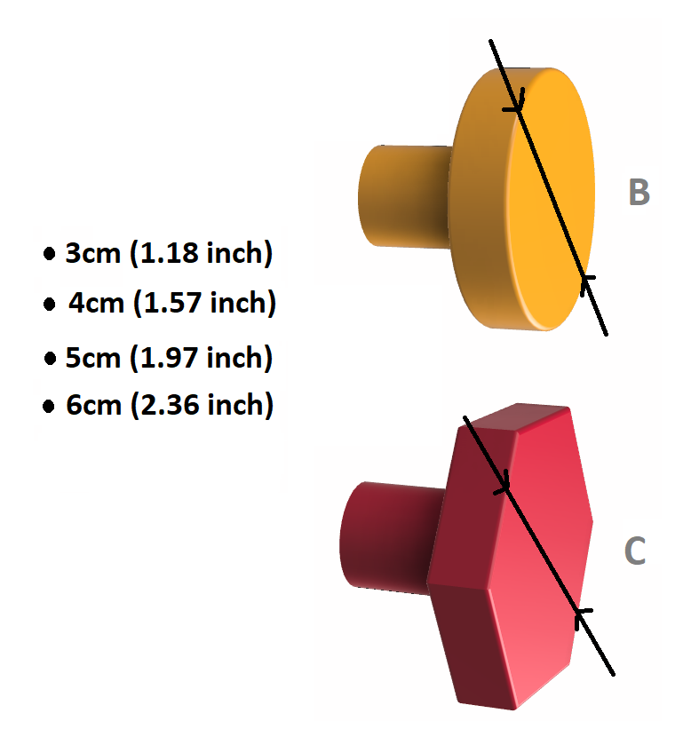 Các móc treo tường nhỏ có đường kính 2.5cm(0.98 inch) hoặc 3cm(1.18 inch) cũng có thể dùng làm tay nắm ngăn kéo.