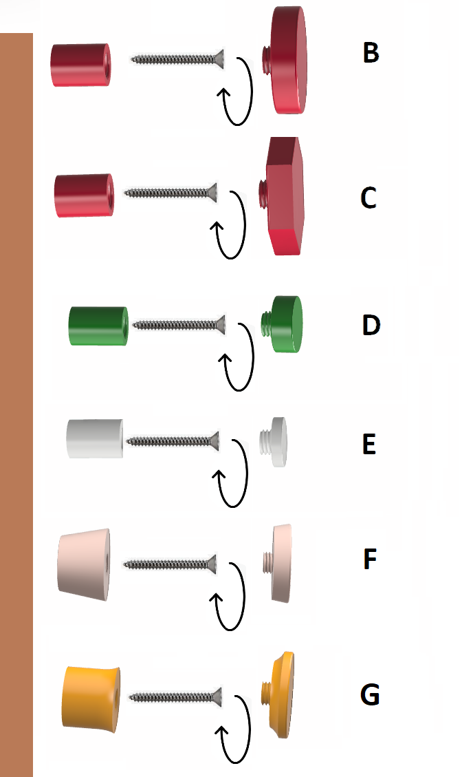 7 loại móc treo tường chắc chắn khác nhau loại ‘A’, 'B', 'C', 'D', 'E', ‘F’, ‘G’ với nhiều kích cỡ.