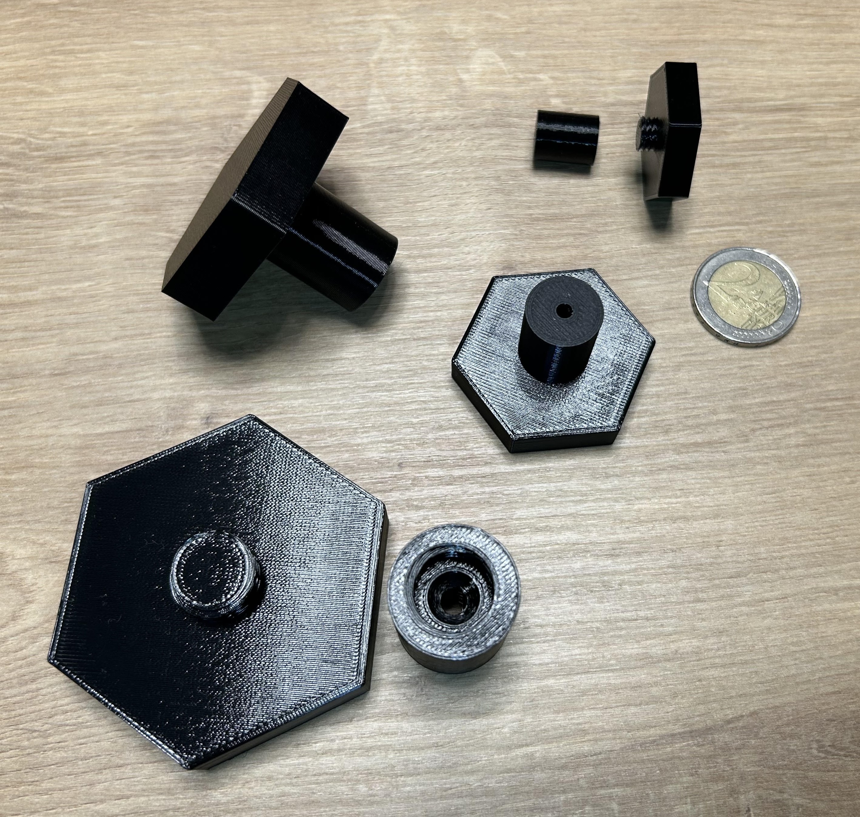Mỗi móc gồm hai hoặc ba bộ phận in do khả năng gắn nó lên tường một cách đơn giản. (Dưới đây là danh sách các tệp có thể in cho từng mẫu cụ thể)