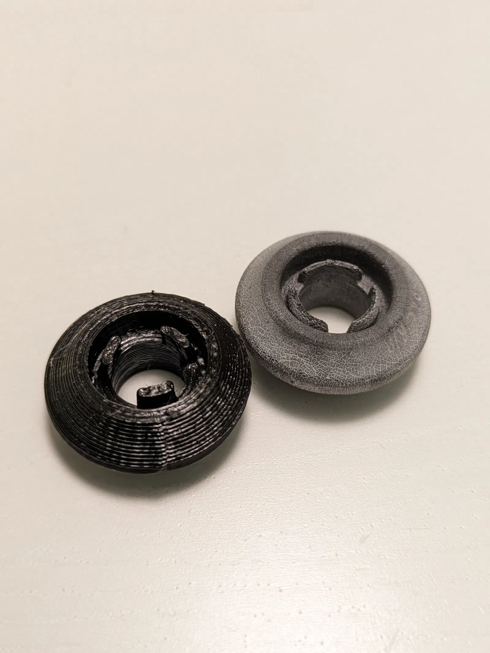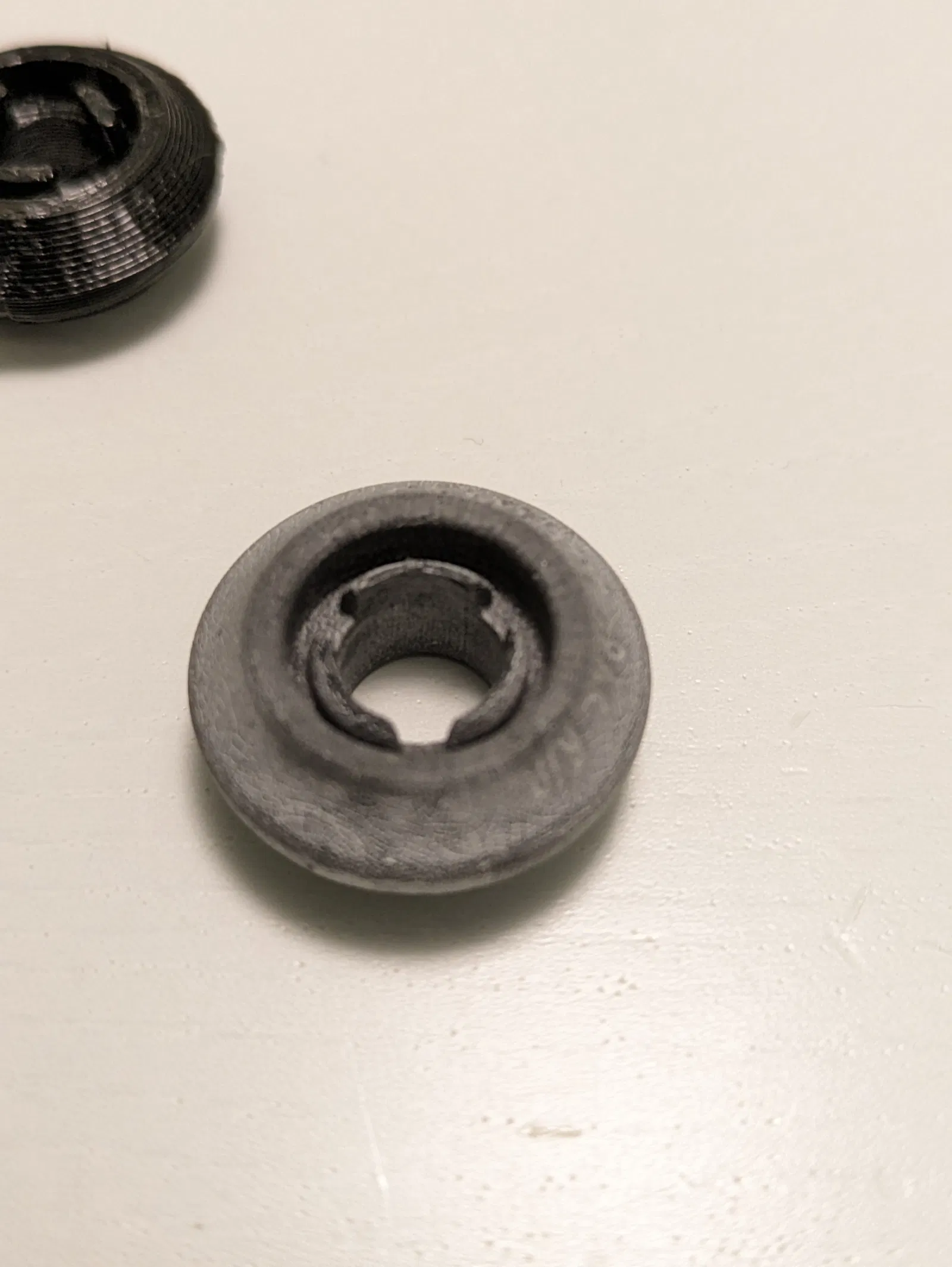 Mình in bánh xe bằng PETG nhưng nó hơi bị biến dạng khi máy rửa chén xài ở nhiệt độ cao nhất (70°C). Tốt nhất là nên in bằng vật liệu chịu nhiệt tốt hơn một chút.