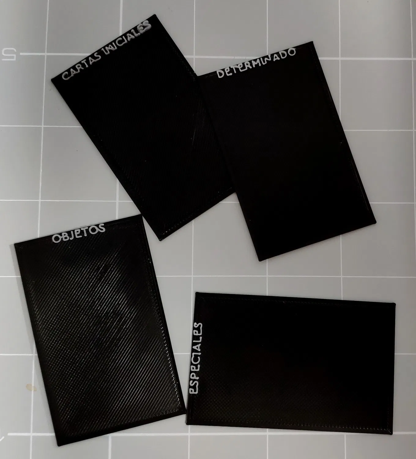 Đây là những dấu phân cách thẻ để chèn tôi vào phiên bản thứ 3 của Arkham Horror. Tệp SCAD để bạn có thể thực hiện bất kỳ sửa đổi. Nếu bạn sử dụng, hãy nhớ đặt nó gần nhất với X0Y0 để lần đầu tiên luôn in. Các chữ cái màu trắng, đã thay đổi dây tóc ở lớp chính xác (ví dụ như 0,32 ở lớp thứ 4). Sửa đổi
