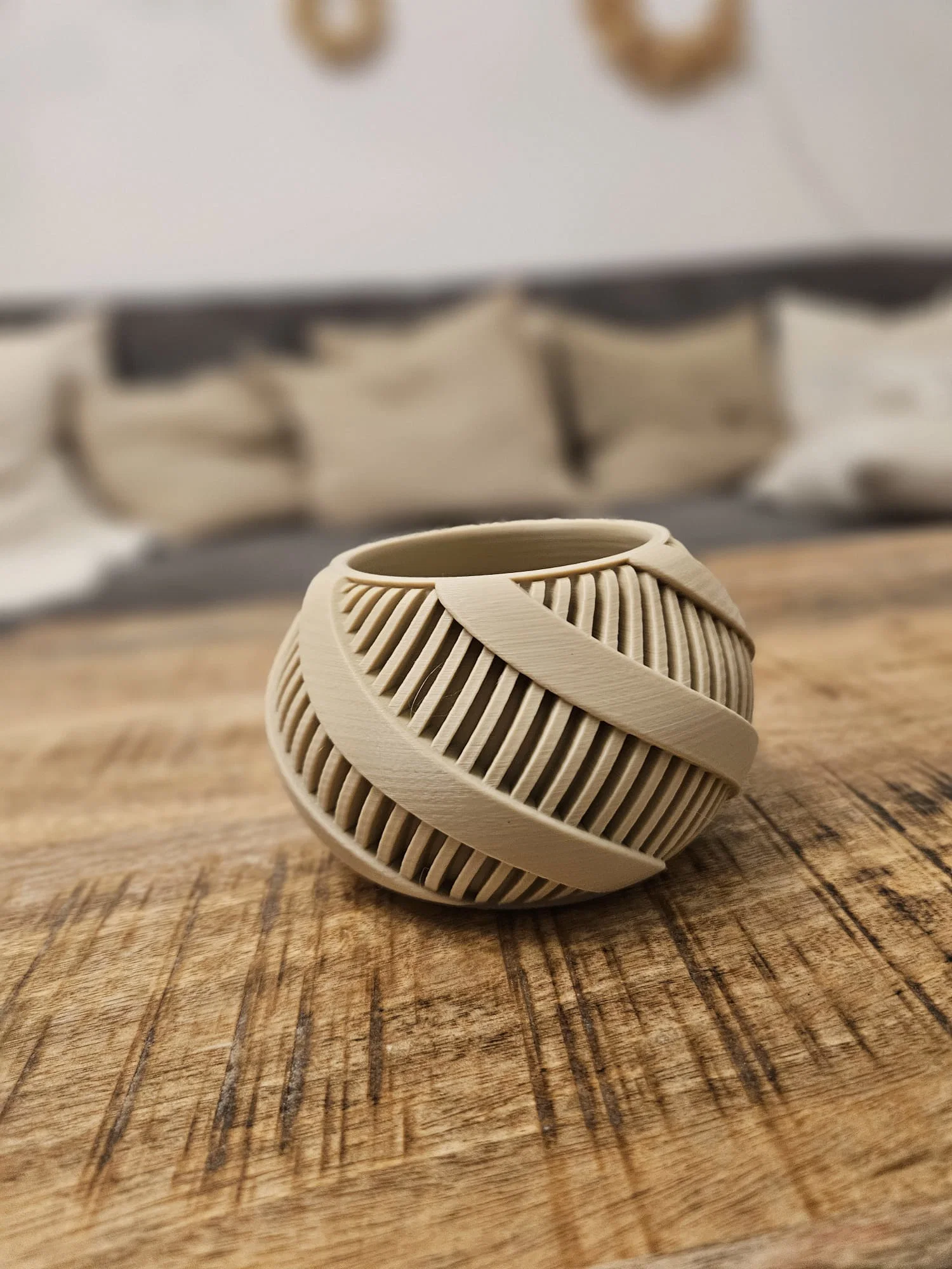 Chậu cây nhỏ. Một phiên bản mới (V3) đã được thêm vào với hình dạng khác để có chất lượng in tốt hơn. Được in với nozzle 0.4 và độ cao lớp 0.20mm.