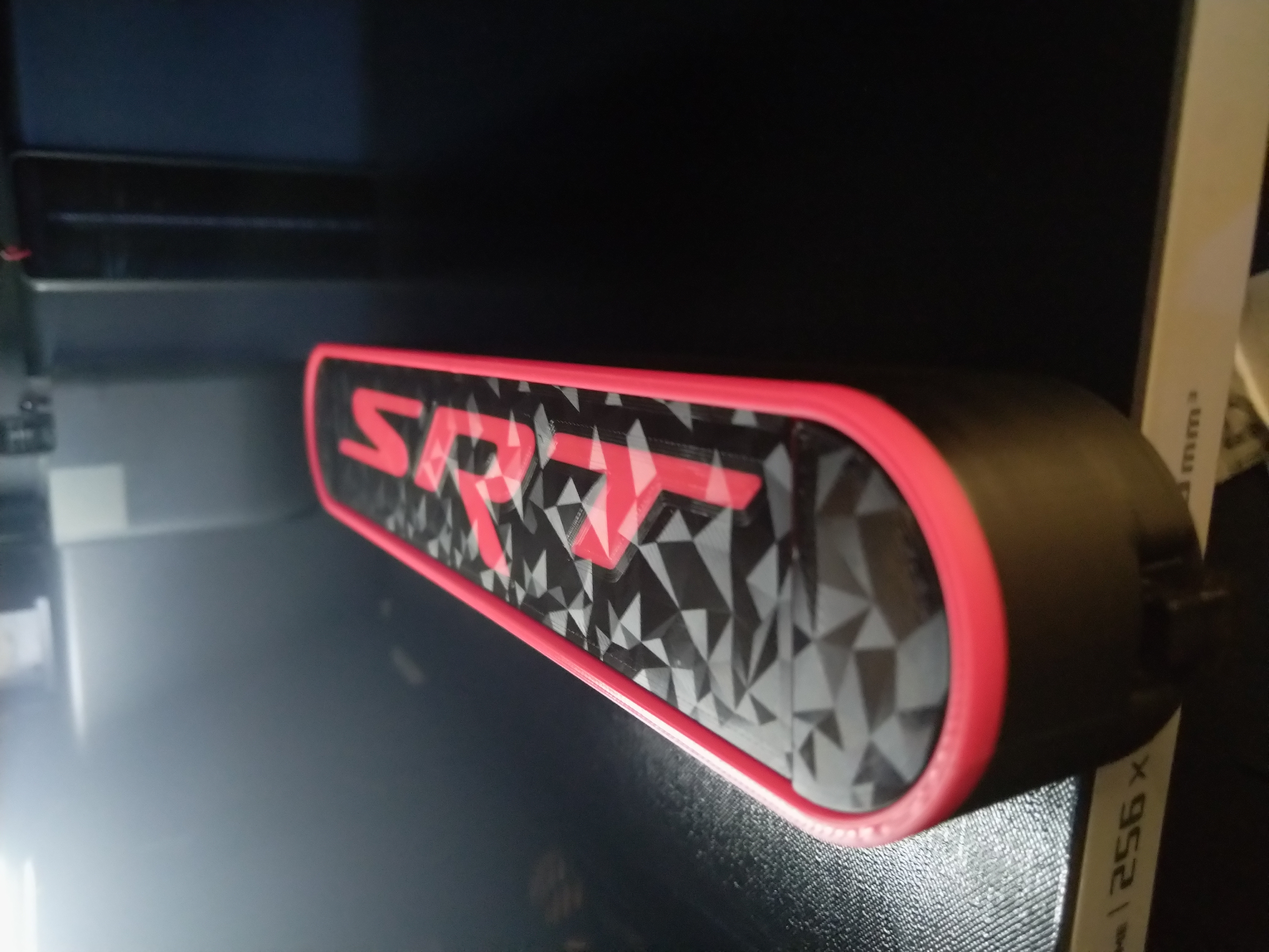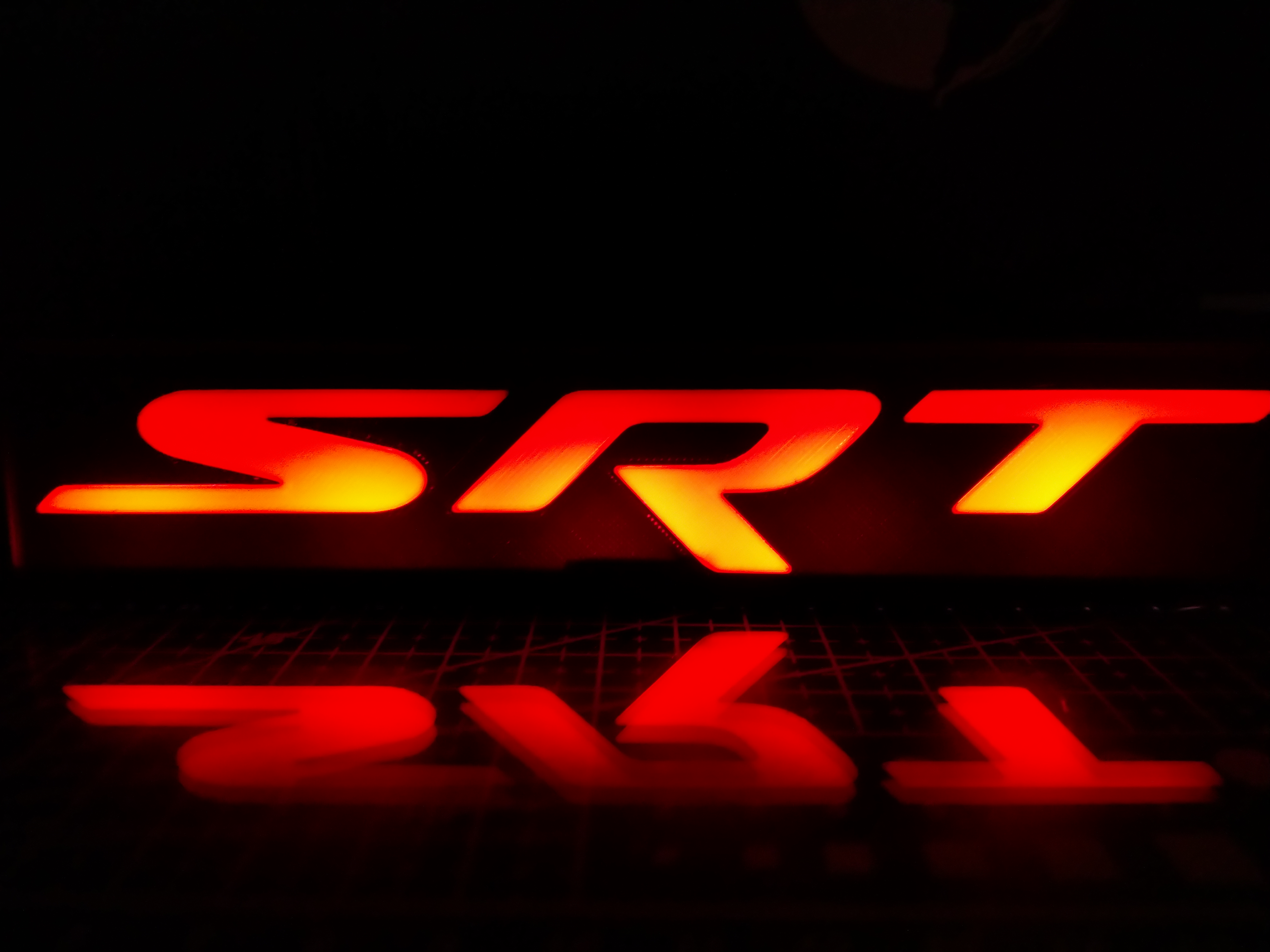Đèn LED với dòng chữ SRT dành cho fan hâm mộ DODGE Challenger. Sản phẩm in từ PLA, có thể in màu bằng AMS hoặc thay đổi màu sắc thủ công. Họa tiết bề mặt độc đáo với tấm lót vân.